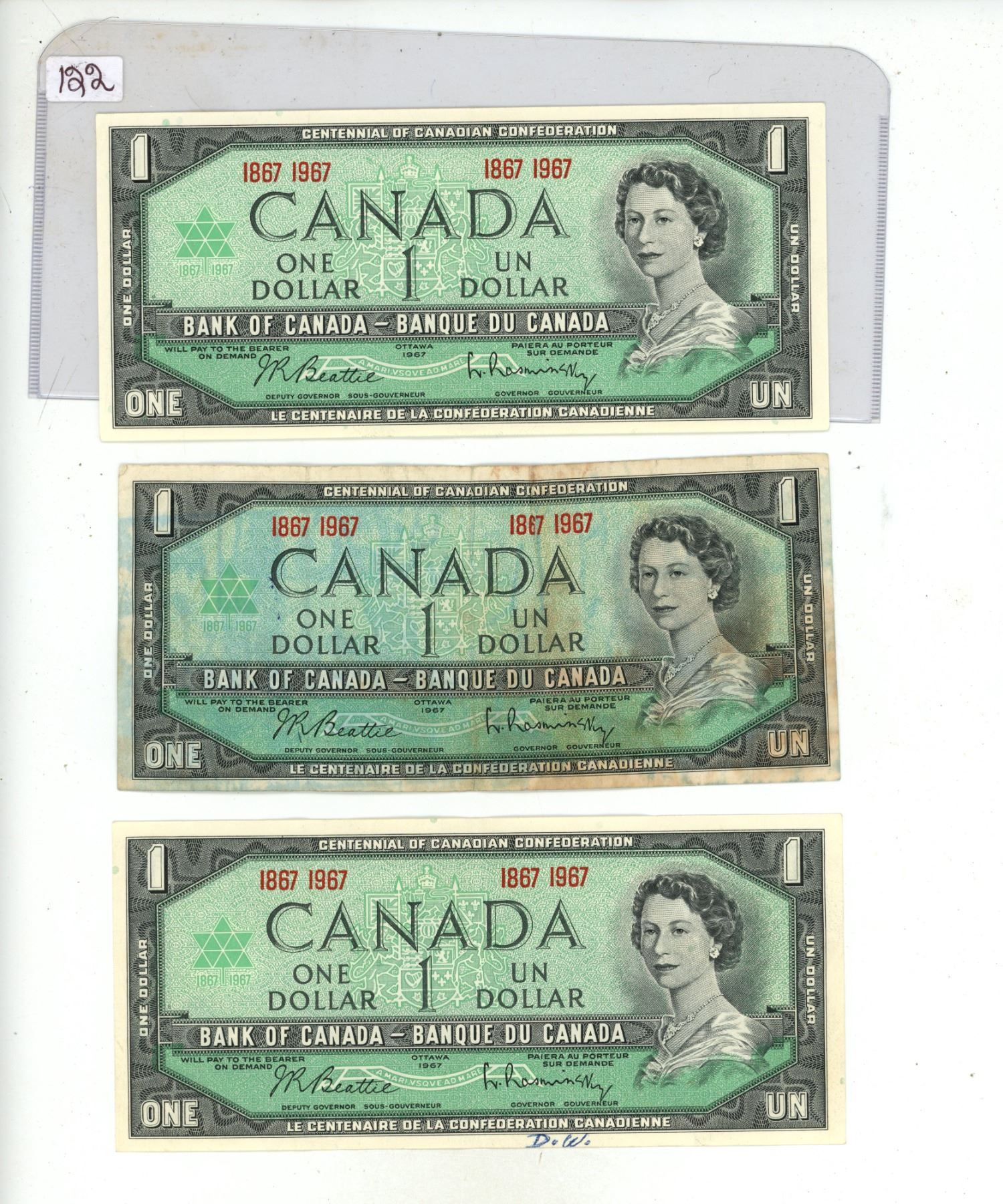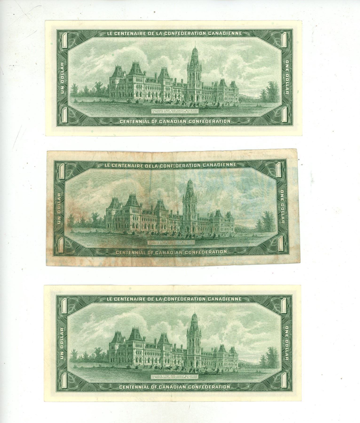 Lot of 3 x1967 canadian $1 bills