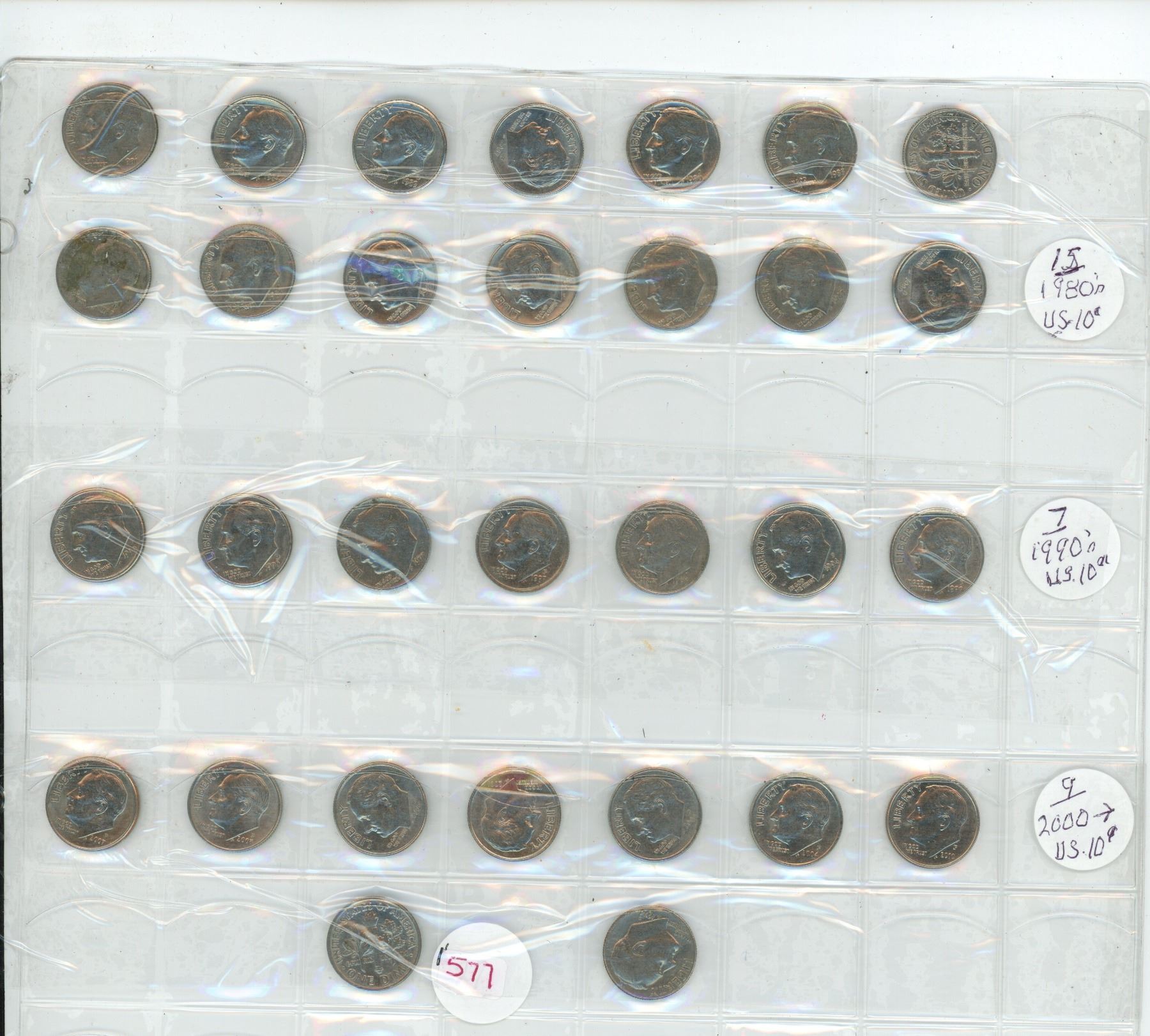 Lot of 30 U.S 10 cent coins 15-1980's, 7-1990's and 9-2000's