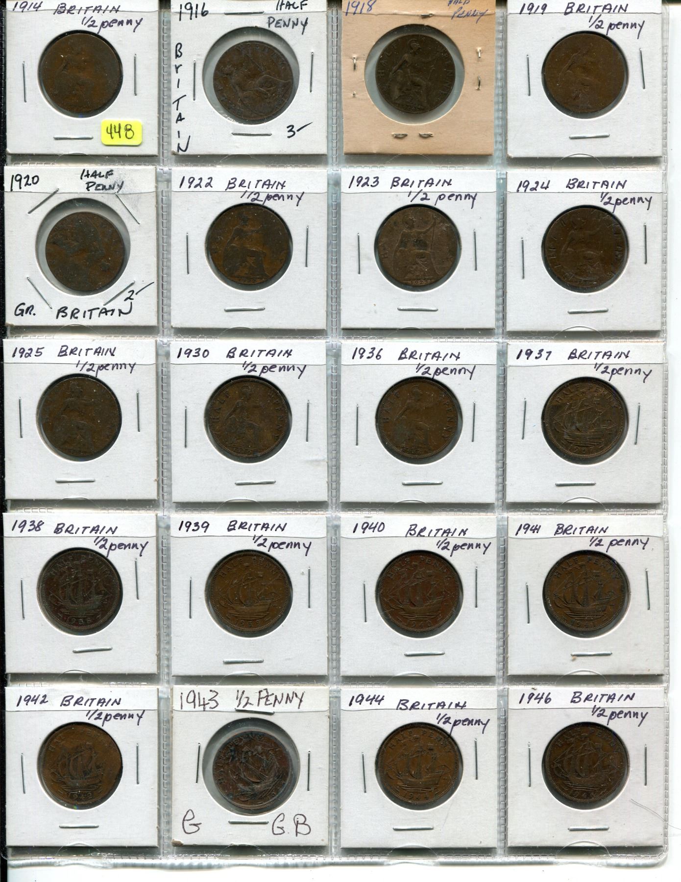 Lot of 33 Great Britian Half Penny coins: 1914, 1916, 1918-20, 1922-25,