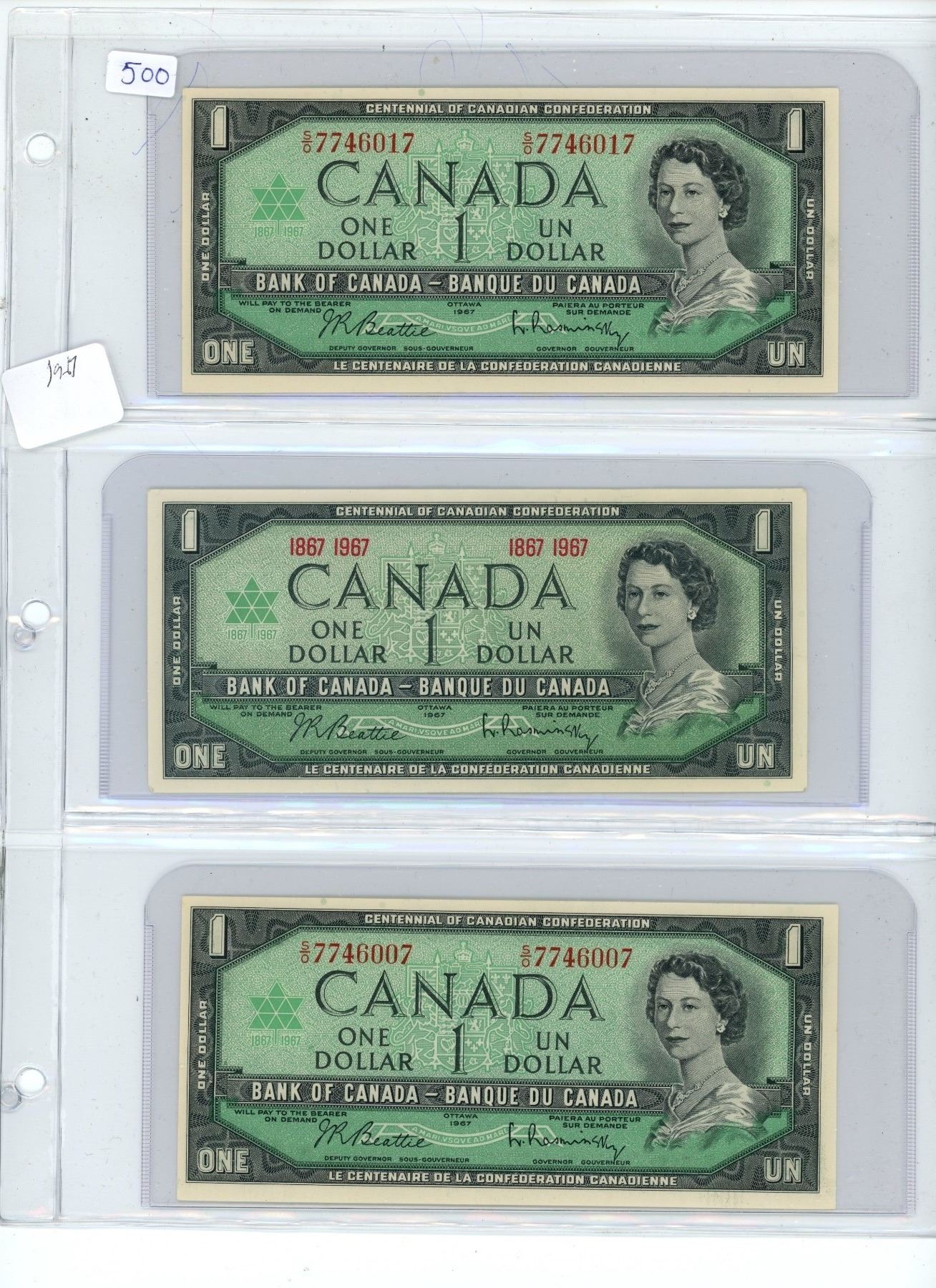 Lot of 3x1967 canadian $1 bills