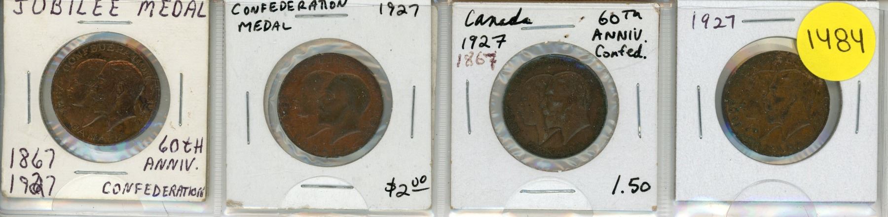 Lot of 4 1867 – 1927 Canadian Confederation medals commemorating the 60th Anniversary of Canada.