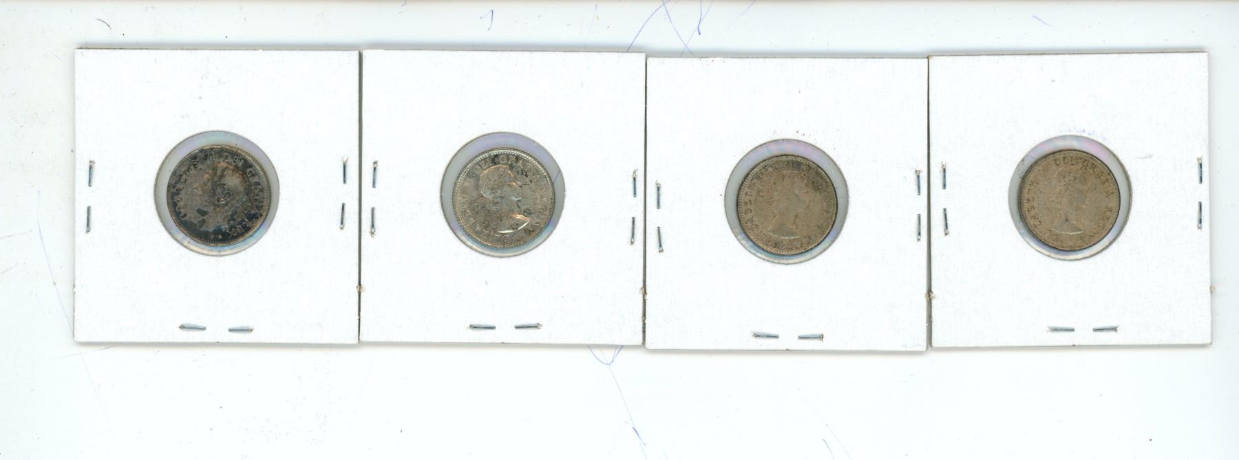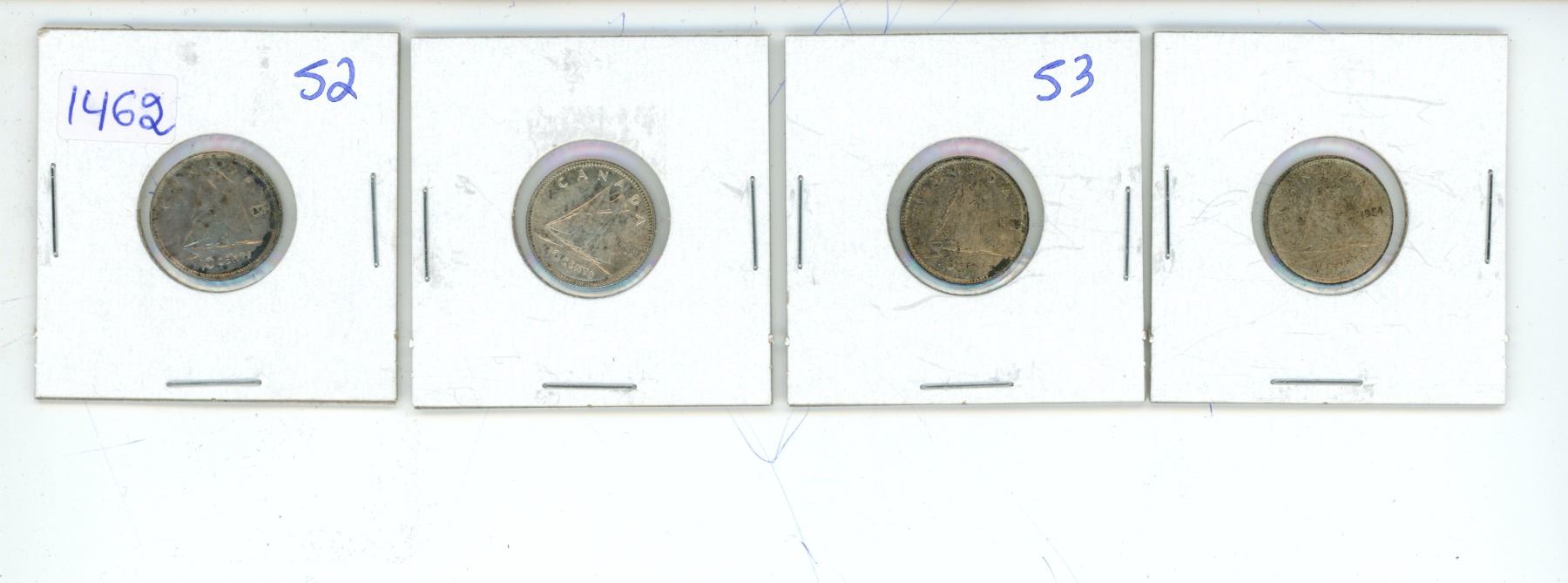 Lot of 4 (1952, 2x1953 and 1954) canadian silver 10 cent coins