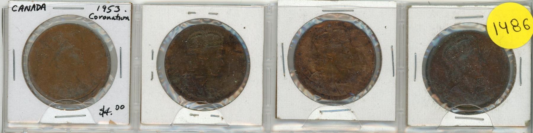 Lot of 4 1953 Queen Elizabeth Coronation medals.