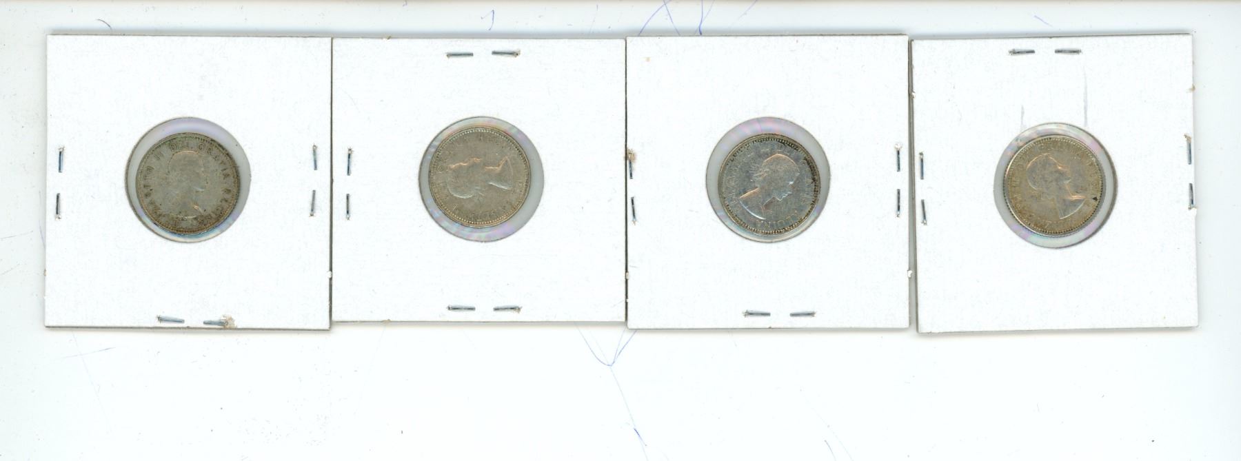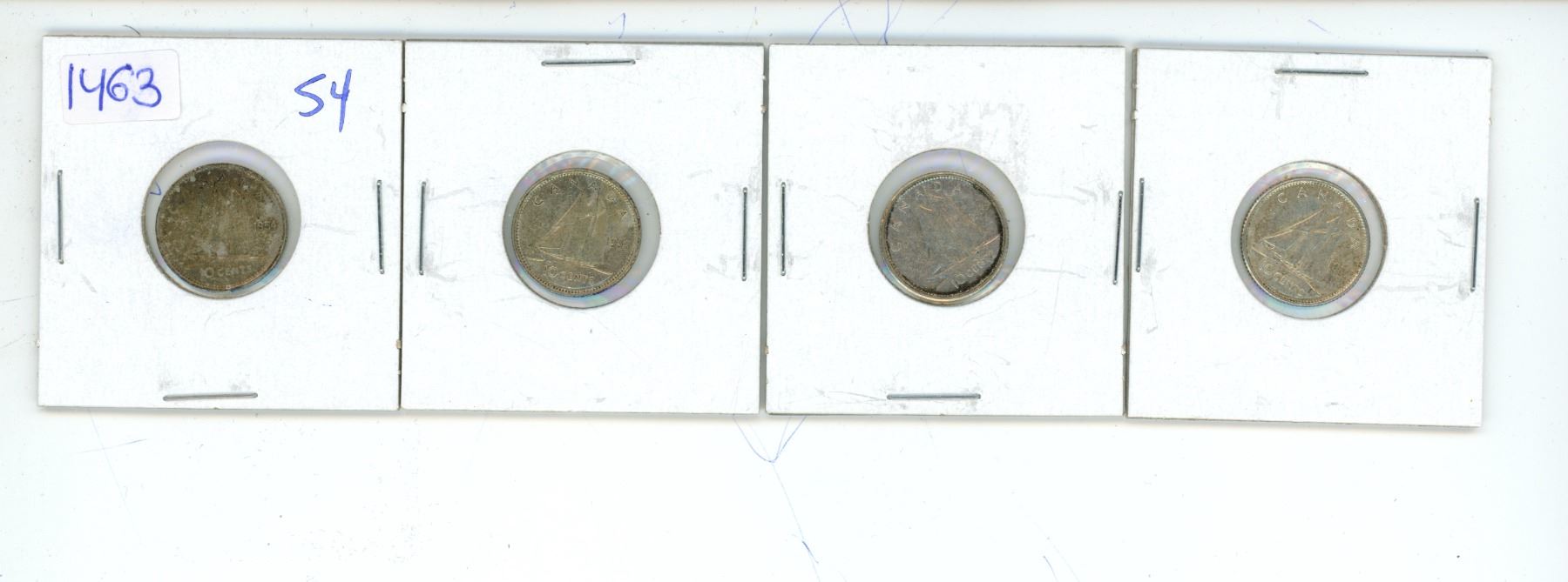 Lot of 4 ( 1954-1957 canadian silver 10 cent coins
