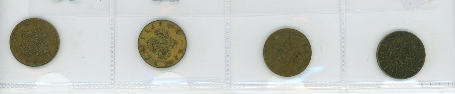 Lot of 4 ( 1961 , 1964, 1965 and 1971 osterreich 1 schilling coins