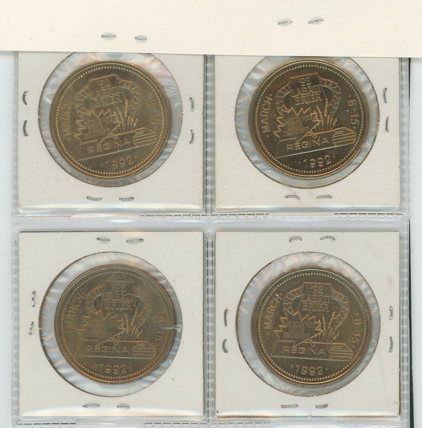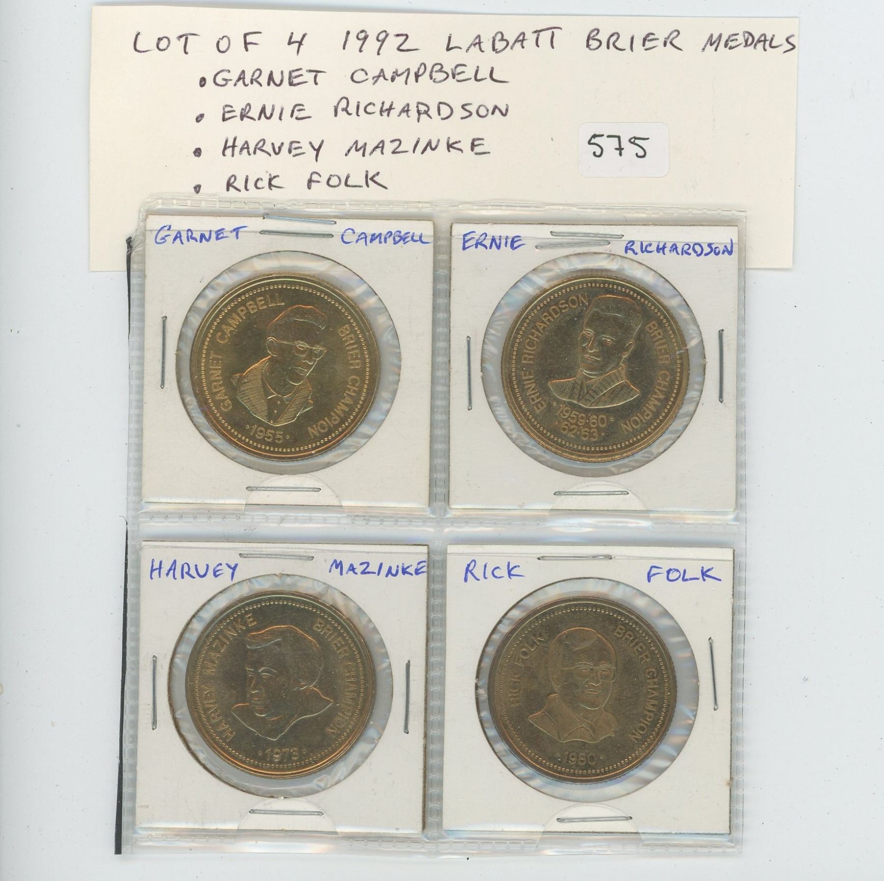 Lot of 4 1992 Labatt Brier Curling Medals held in Regina. Includes Garnet Campbell, Ernie Richardson, Harvey Mazinke & Rick Folk. All Unc. Nice.