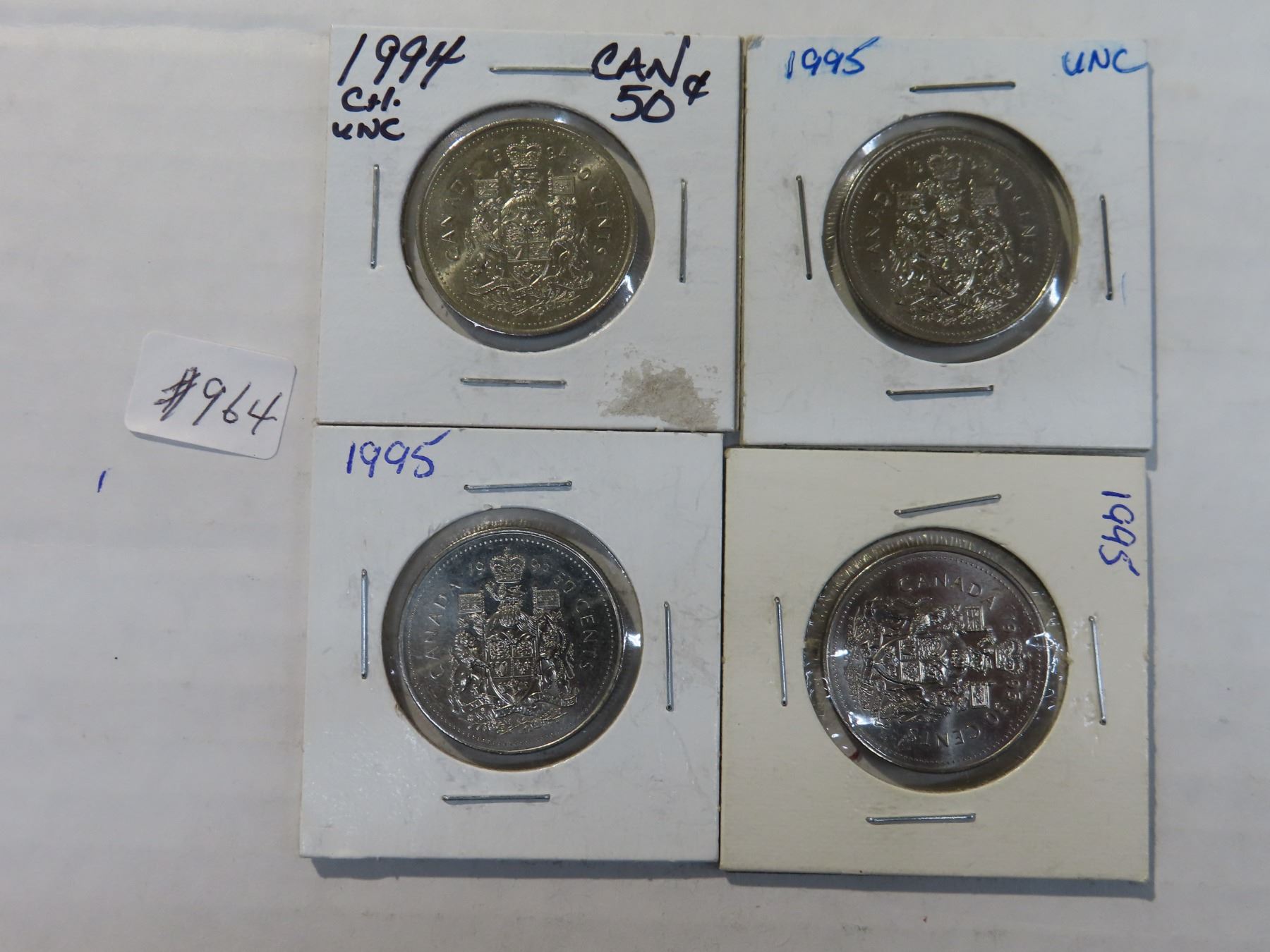 Lot of 4 (1x1994 and 3x1995) canadian 50 cent coins