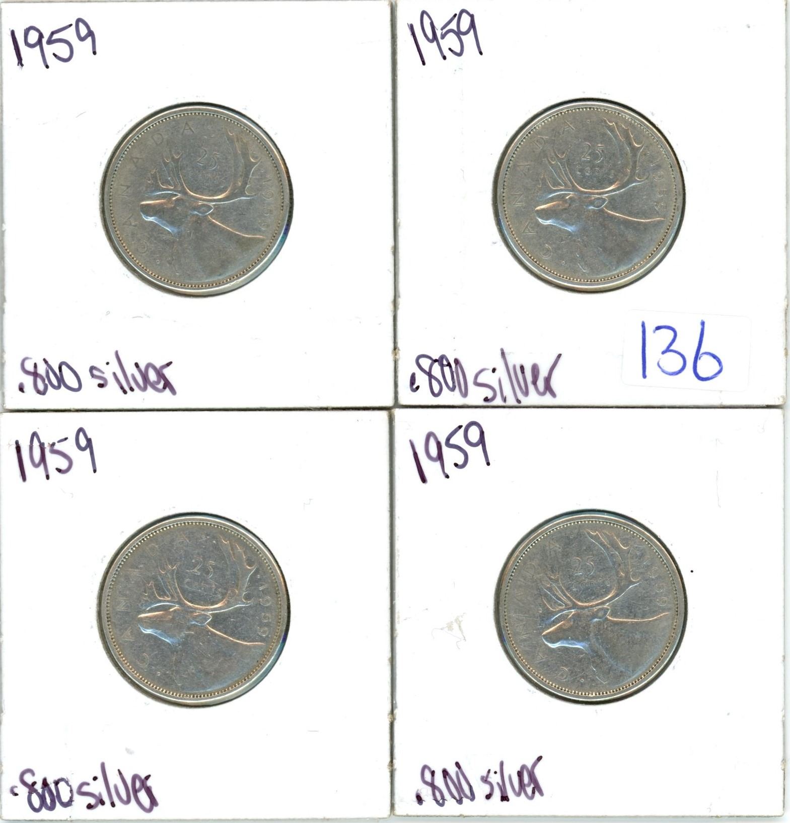 Lot of 4 .800 silver quarters 25¢ coins
