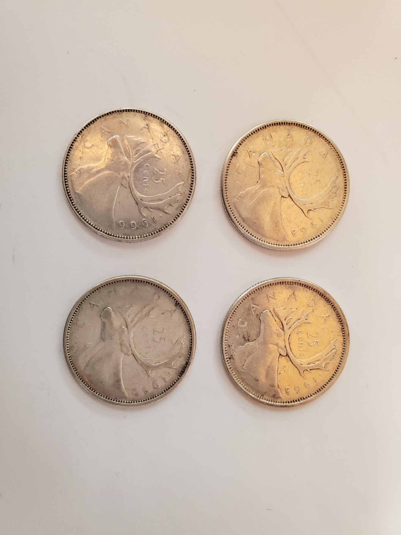 Lot of 4 .800 silver quarters 25¢ coins