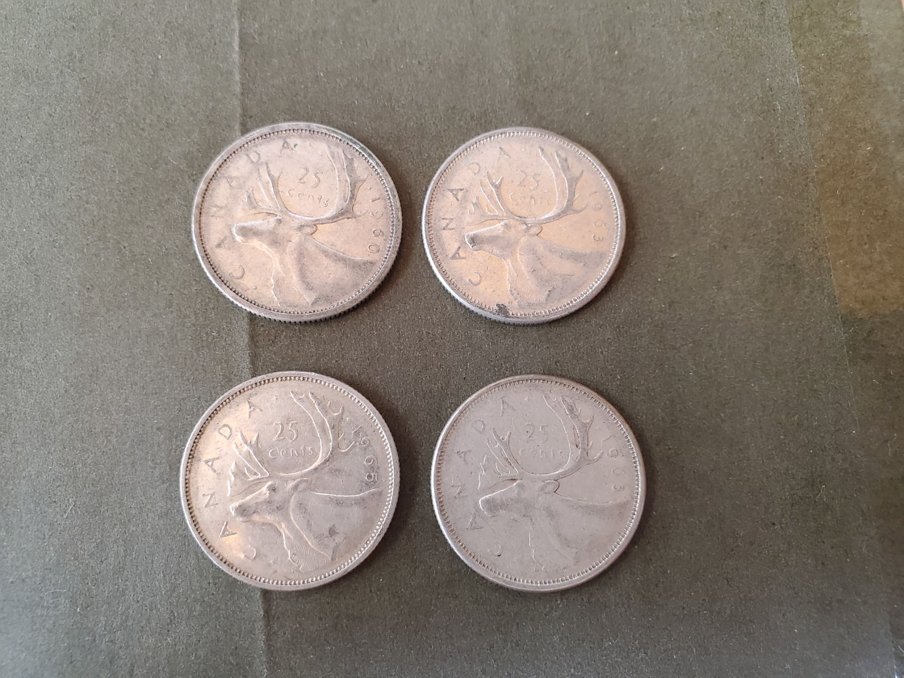 Lot of 4 .800 silver quarters 25¢ coins