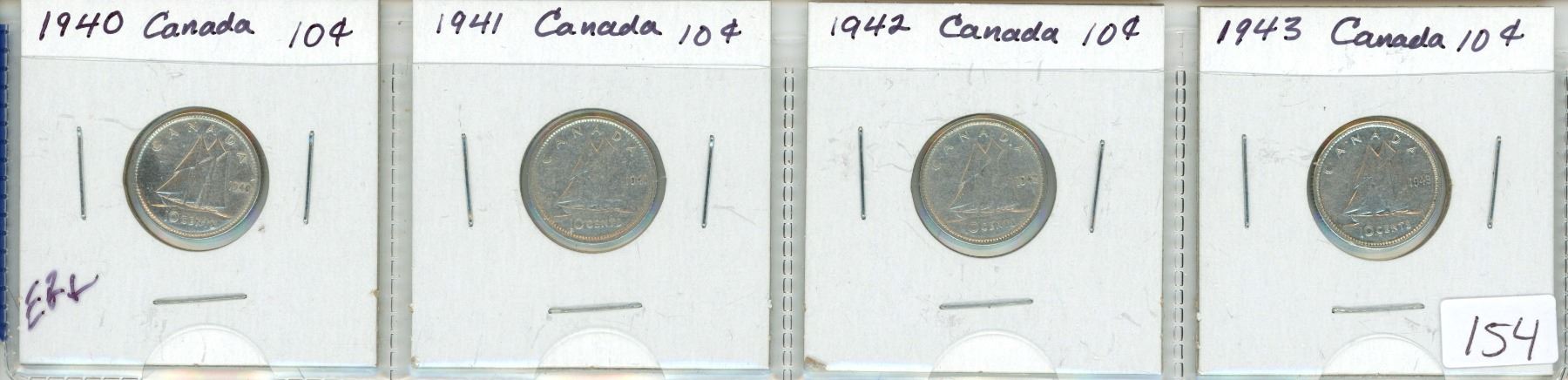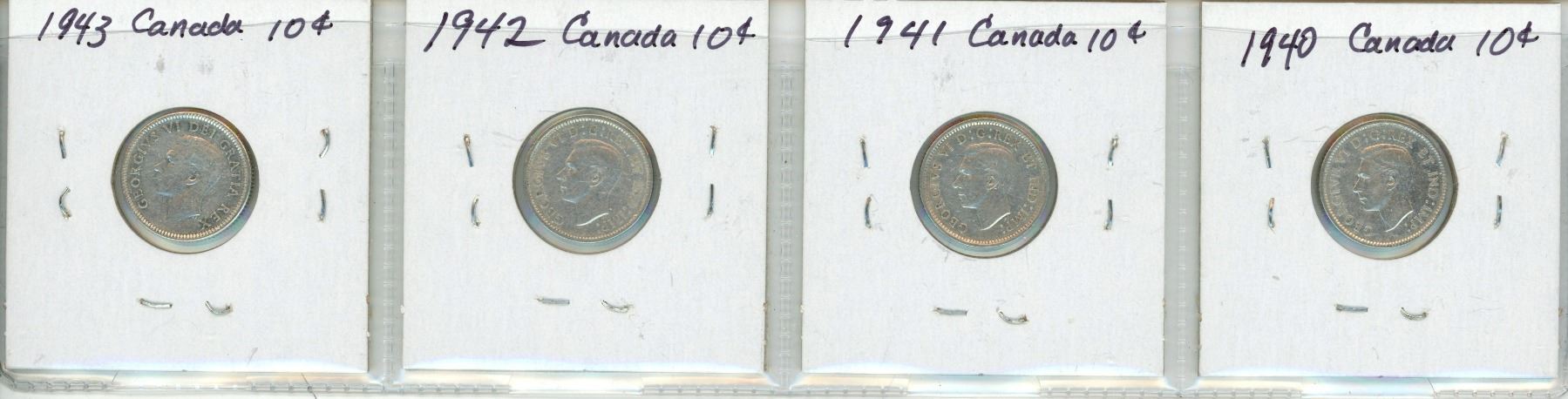 Lot of 4 Canada 10¢: 1940 -1943