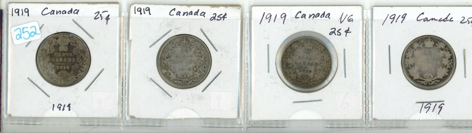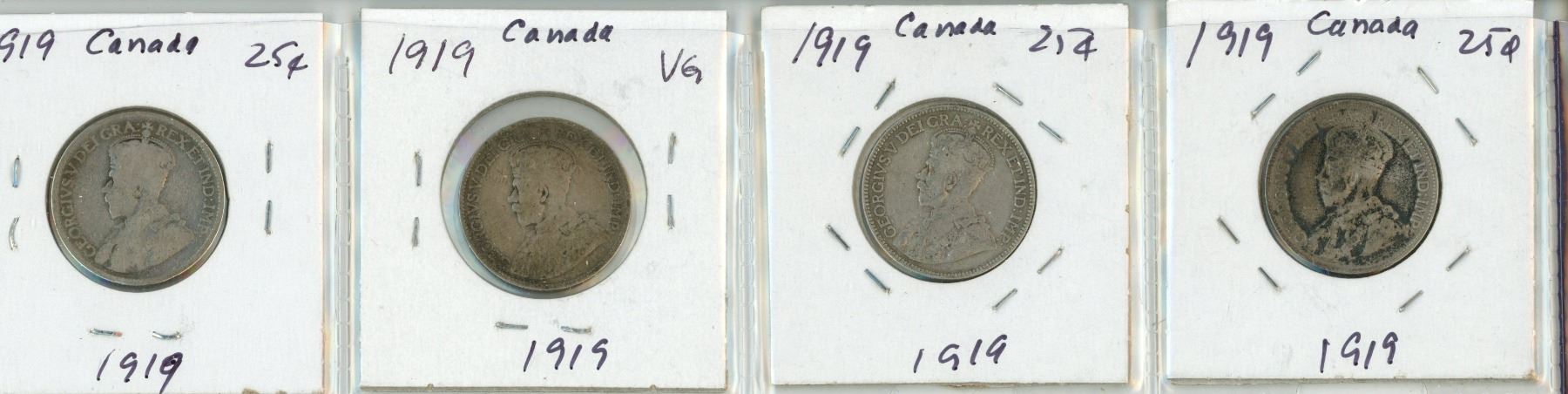 Lot of 4 Canada 1919 Silver 25¢