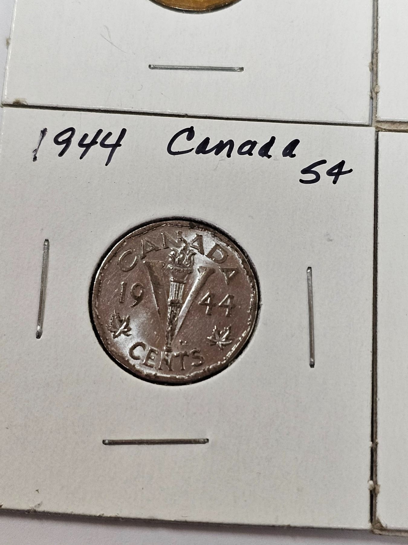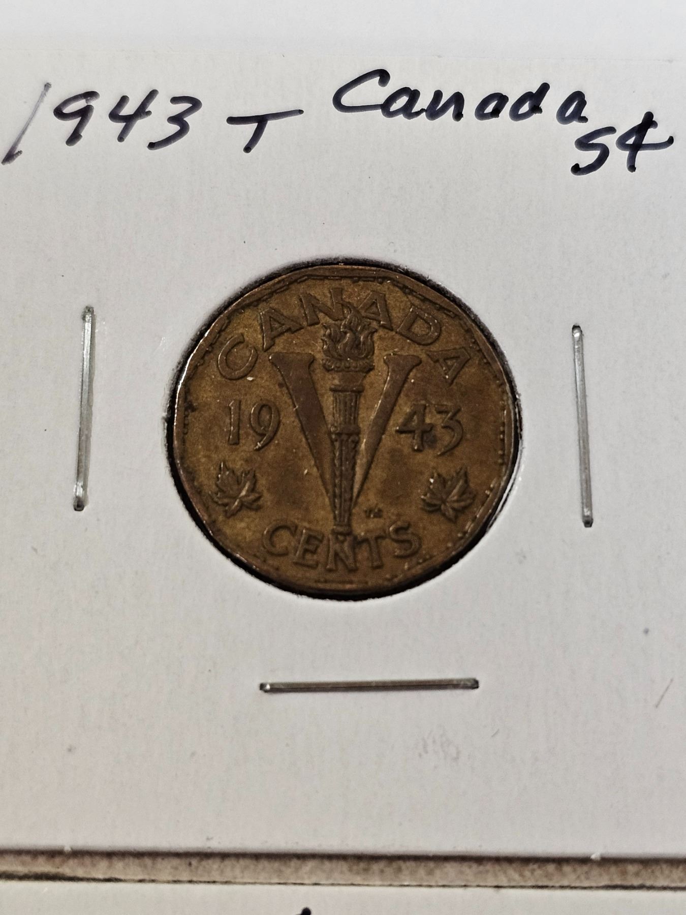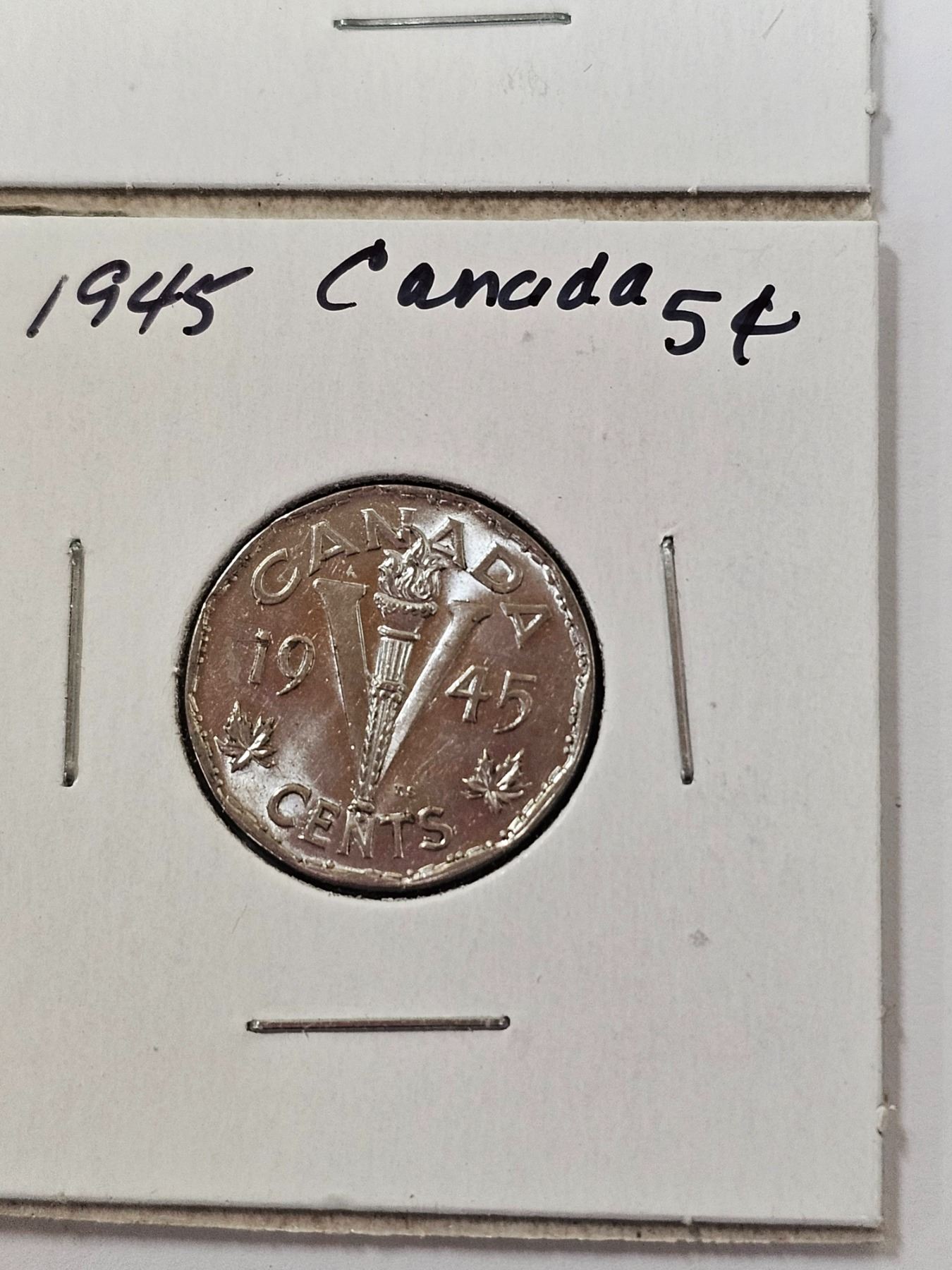Lot of 4 Canada 5¢: 1942 Tombac, 1943 Tombac, 1944, 1945