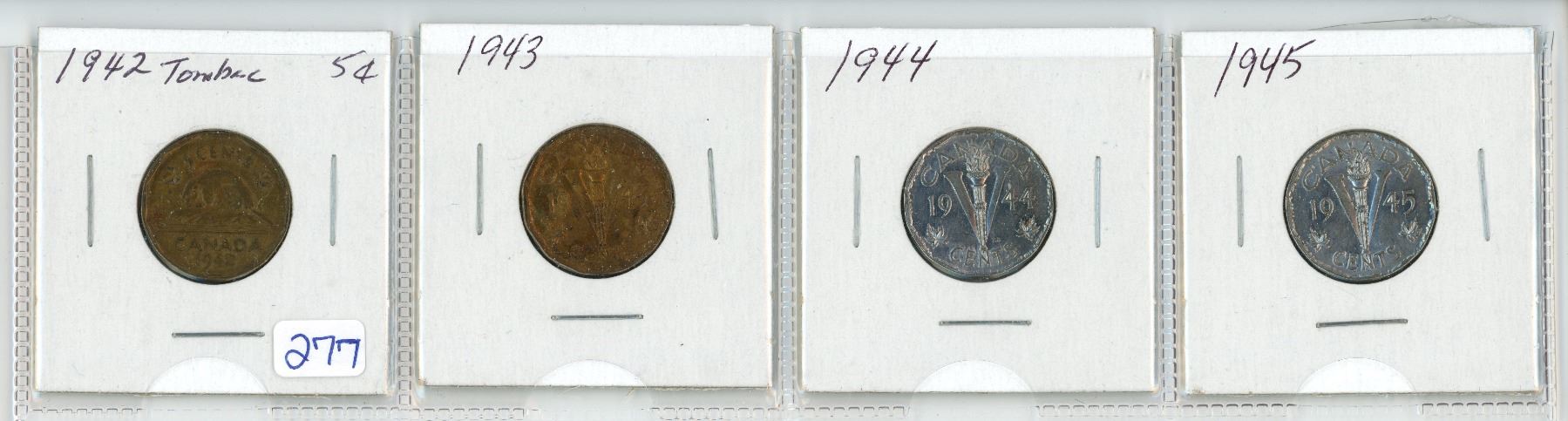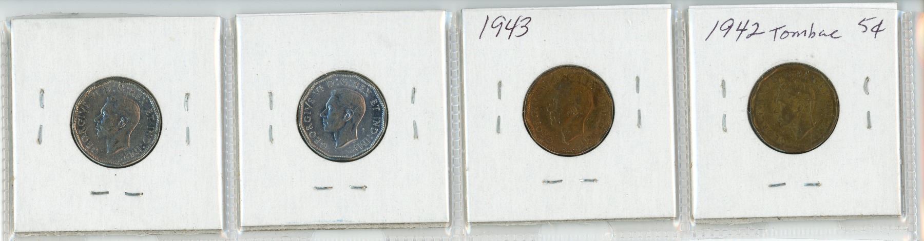 Lot of 4 Canada 5¢: 1942 Tombac, Victory 1943 - 45
