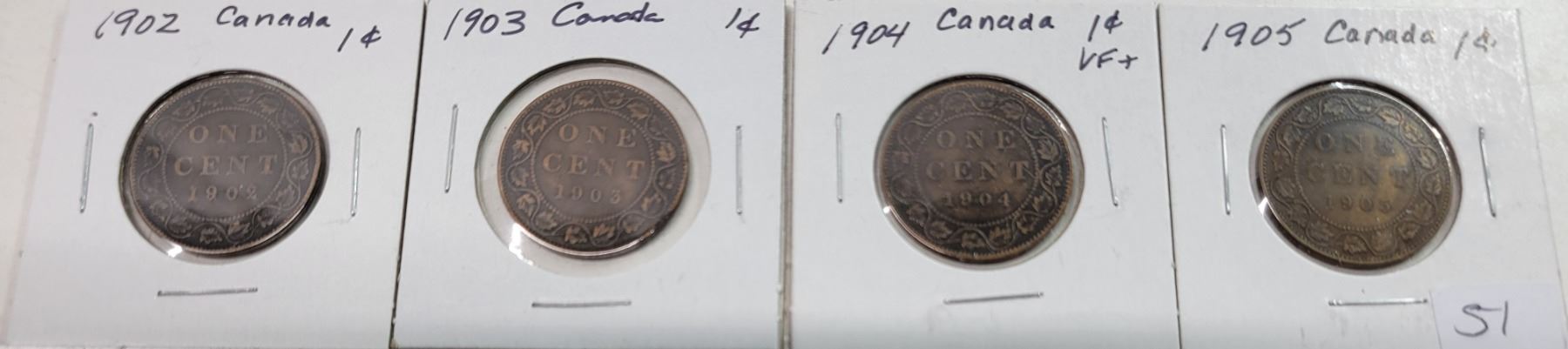Lot of 4 Canada Large Cents: 1902 - 1905