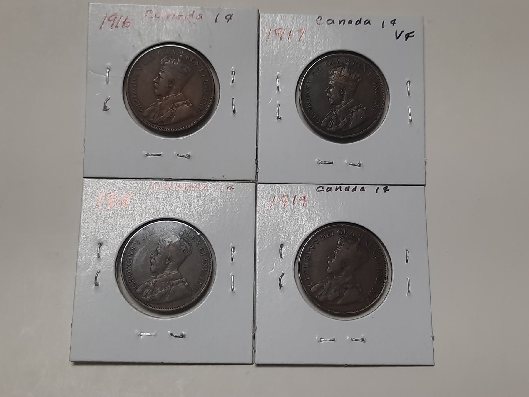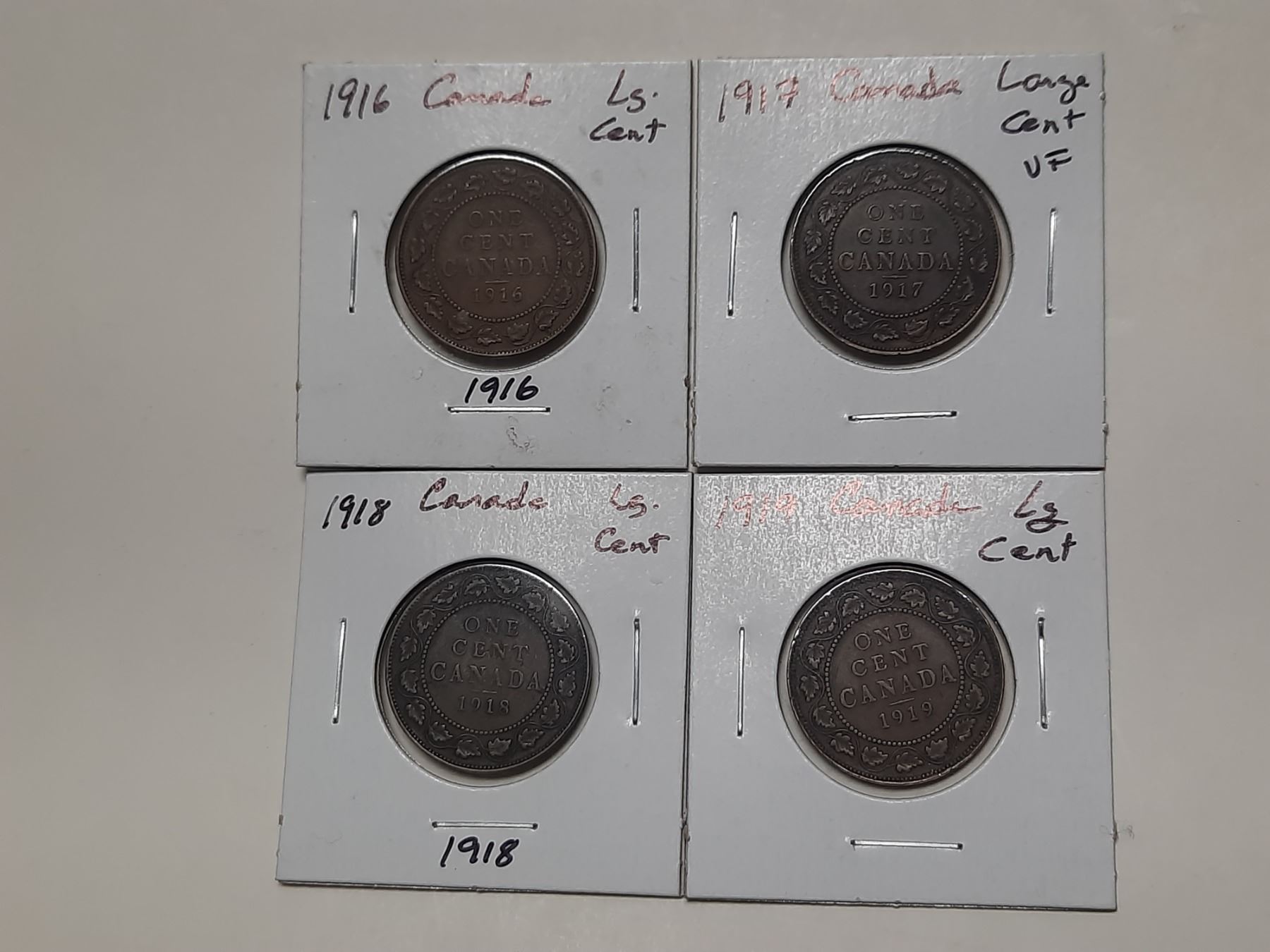 Lot of 4 Canada Large Cents: 1916 - 1919
