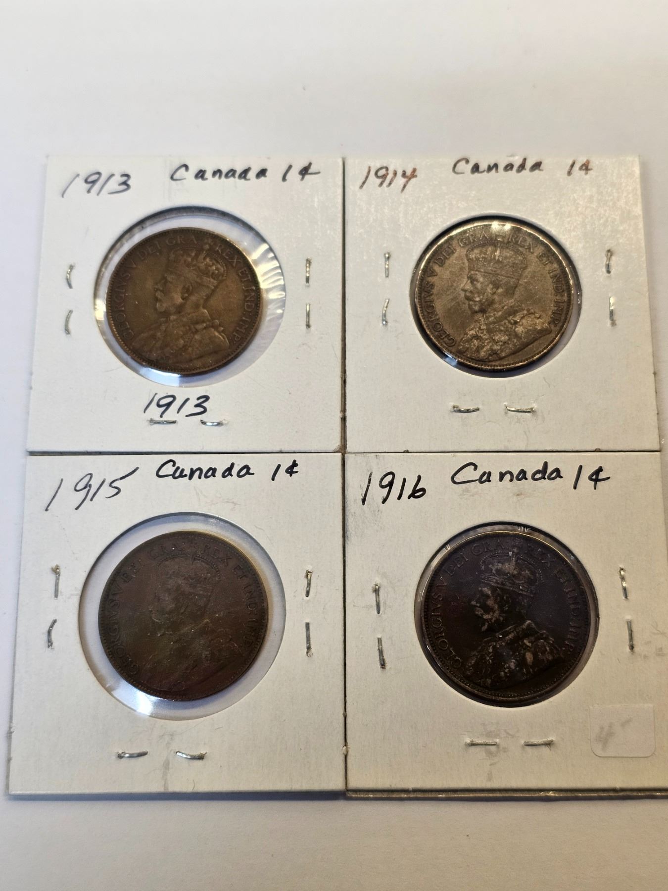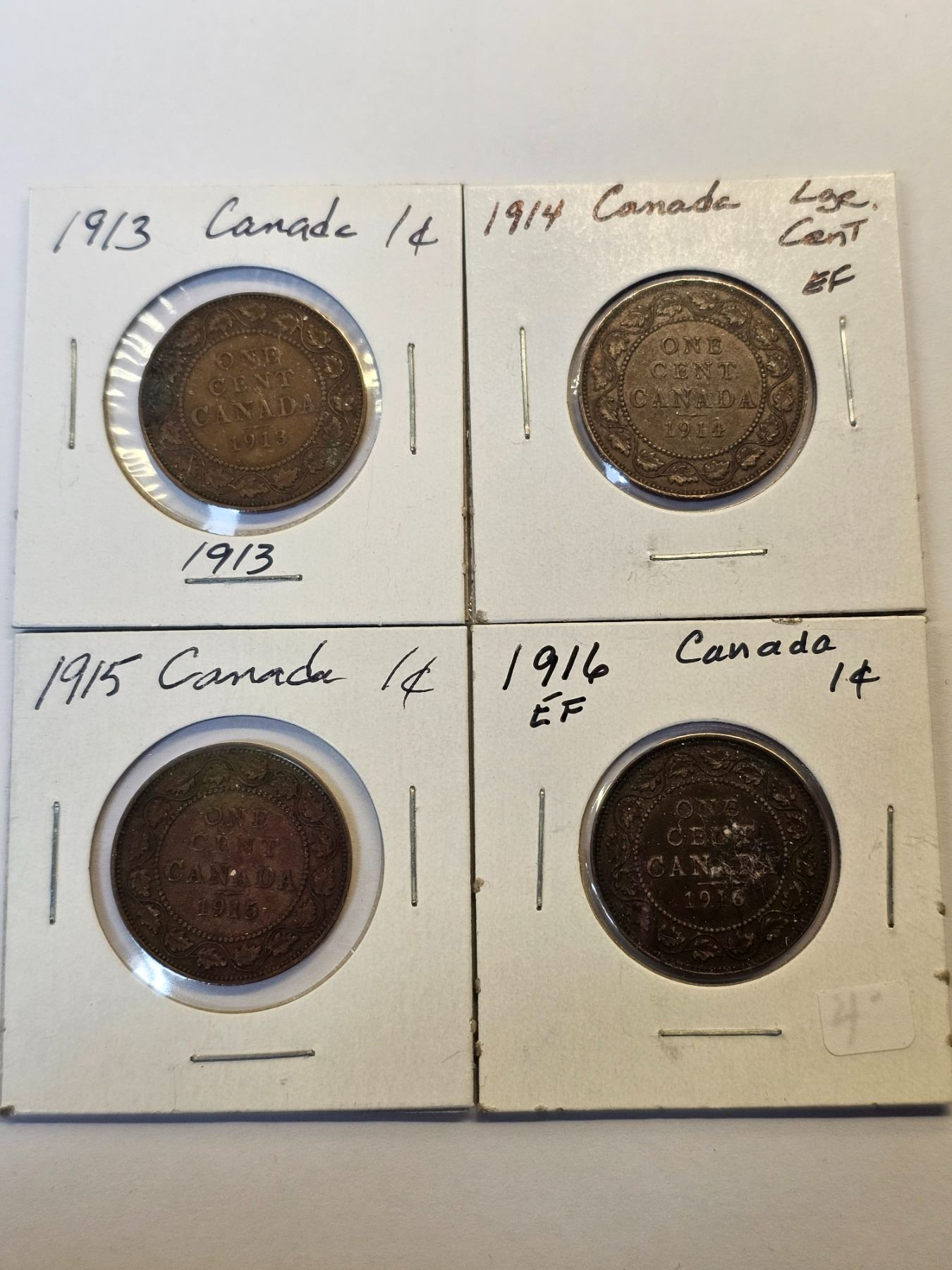 Lot of 4 Canada Large Pennies: 1913 - 1916