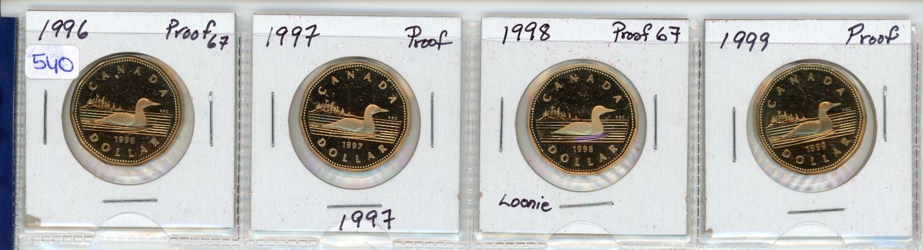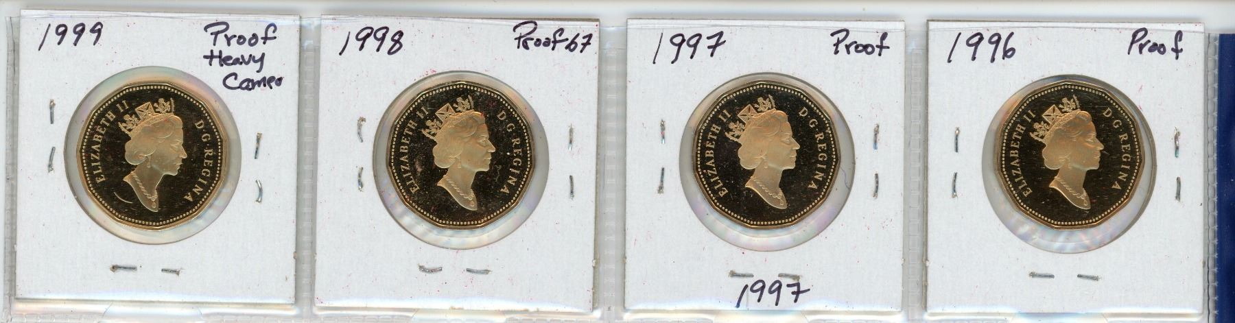 Lot of 4 Canada Proof Loon Coins: 1996-99