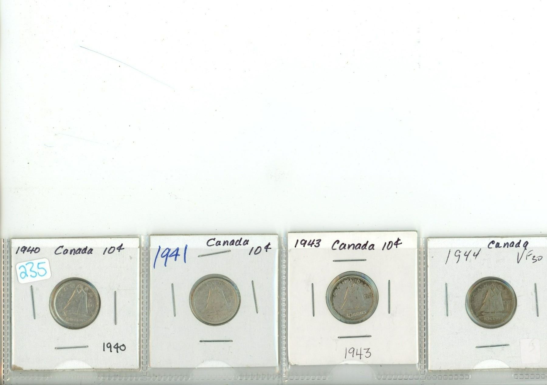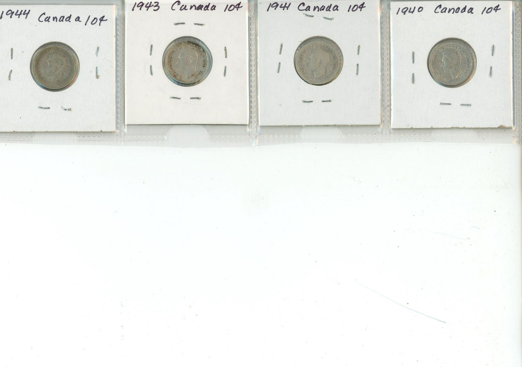 Lot of 4 Canada Silver 10¢: 1940, 1941, 1943, 1944