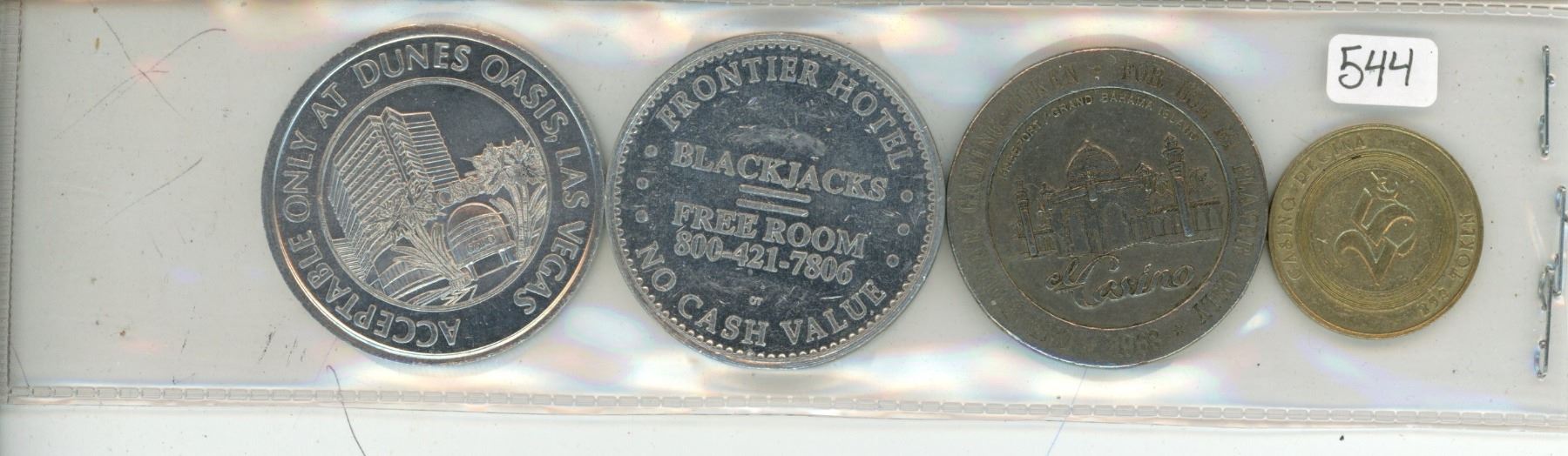 Lot of 4 Casino Tokens. Includes Las Vegas, Grand Bahamas & Casino Regina.