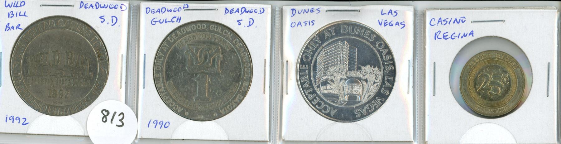 Lot of 4 Casino Tokens from South Dakota, Las Vegas & Regina.