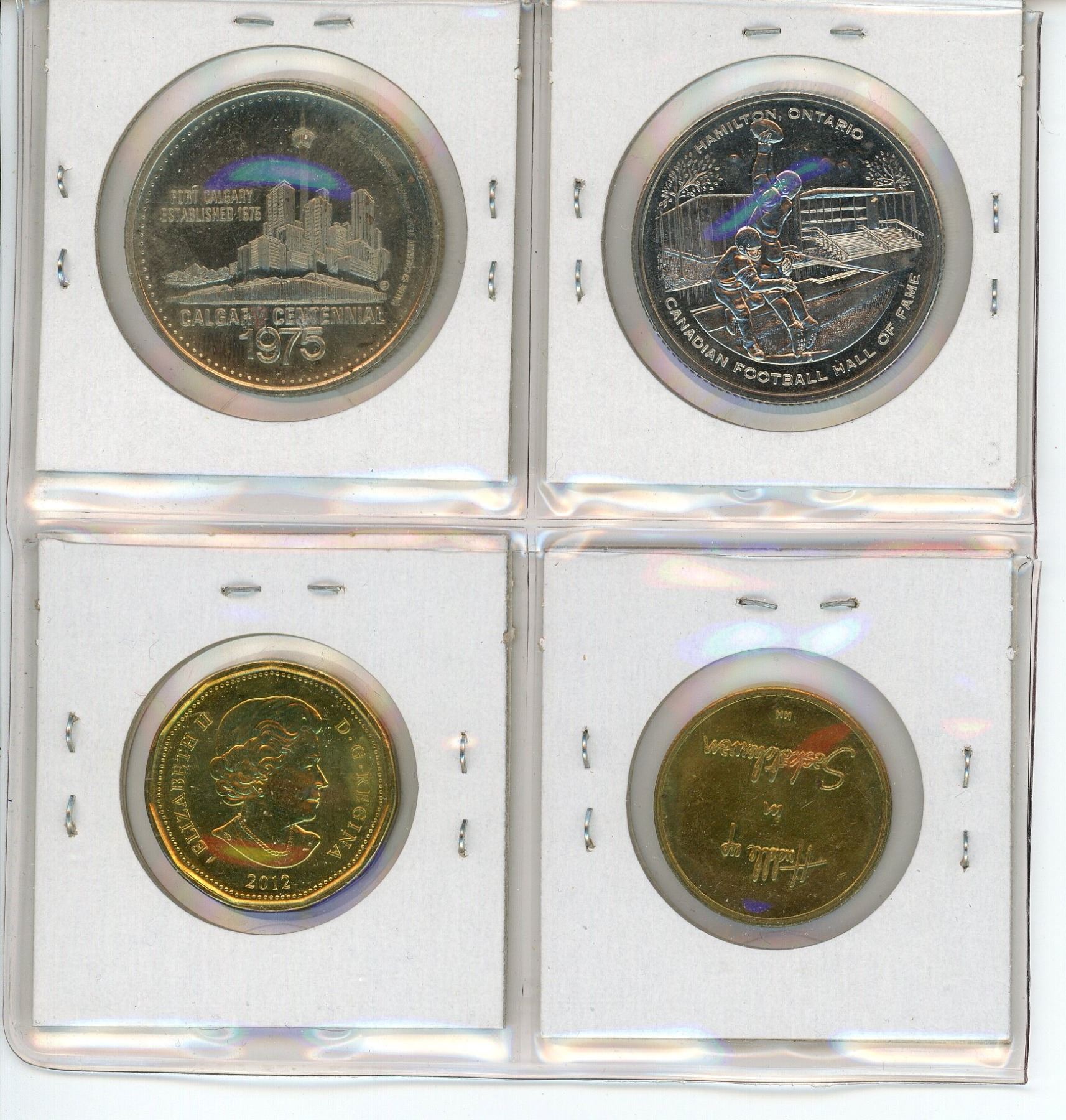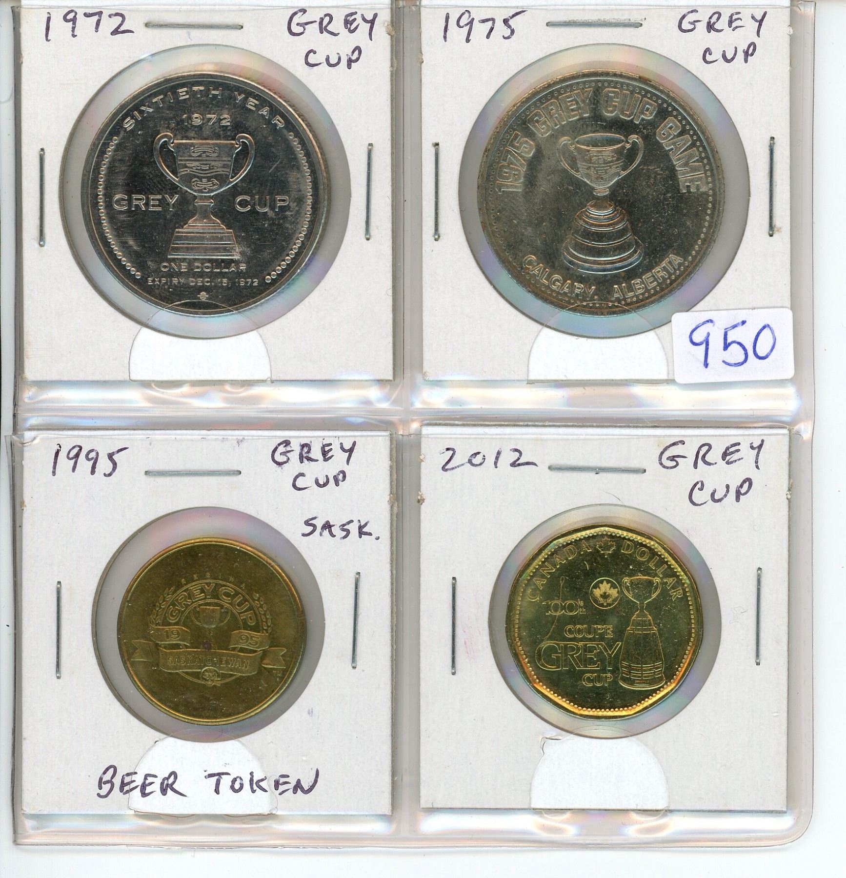 Lot of 4 Grey Cup Medals, Tokens & Loonie. Includes 1972, 1975, 1995 & 2012.