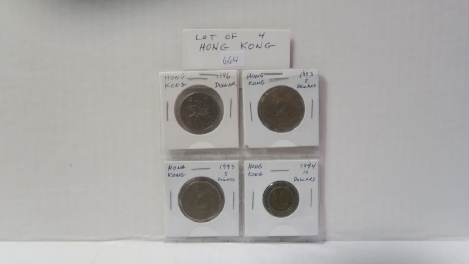 Lot of 4 Hong Kong Coins. Includes 1996 Dollar, 1993 $2, 1993 $5 & 1994 $10.