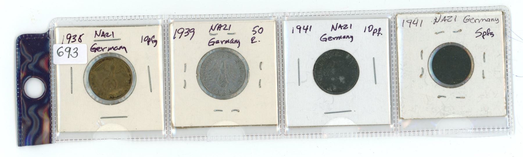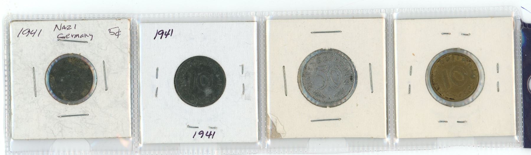 Lot of 4 Nazi germany pfenning coins: 10(1938), 50(1939), 10(1941) AND 5(1941)