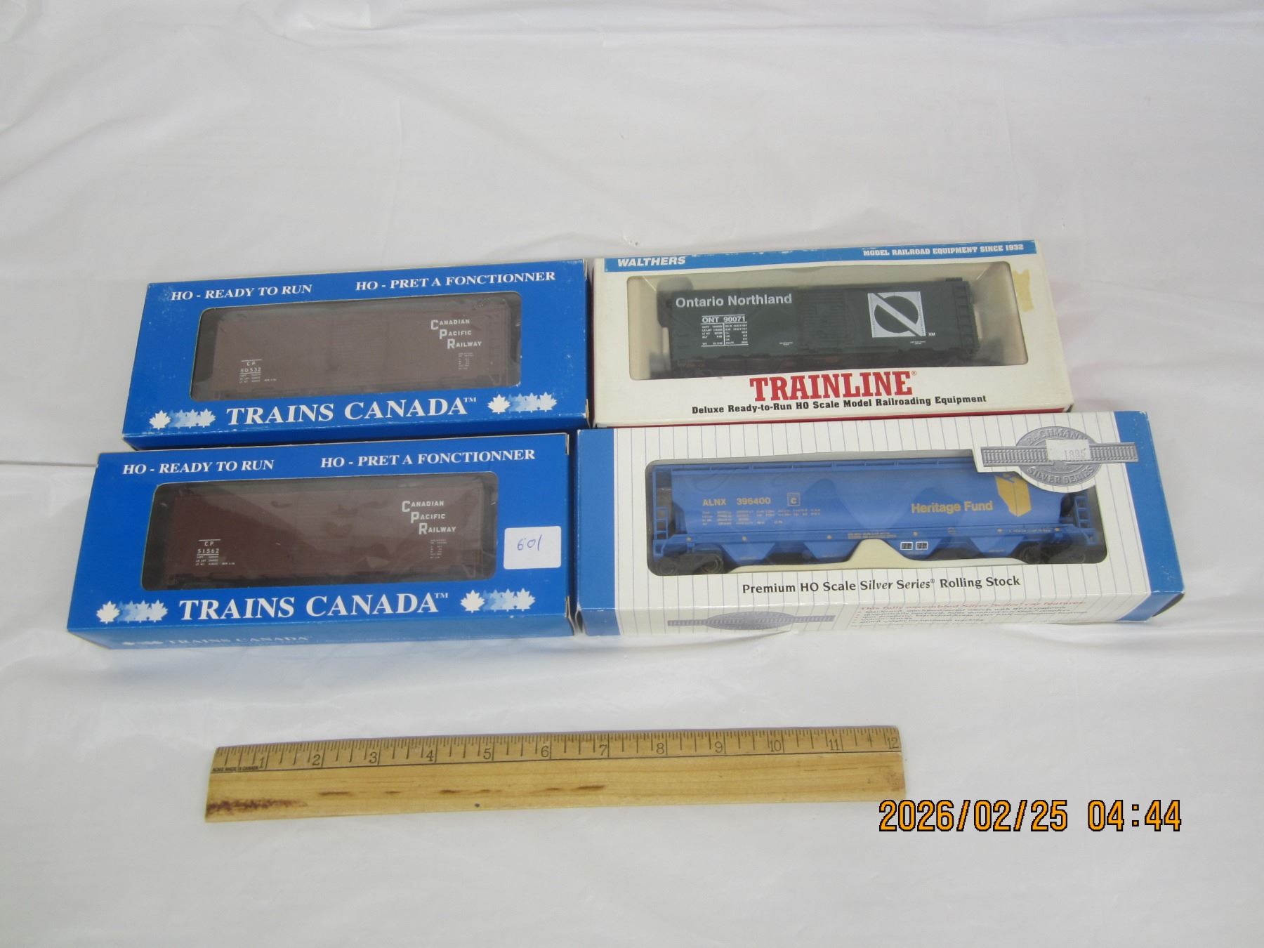 Lot of 4 New Old Stock HO Train Cars Bachman, Train Line, Trans Canada