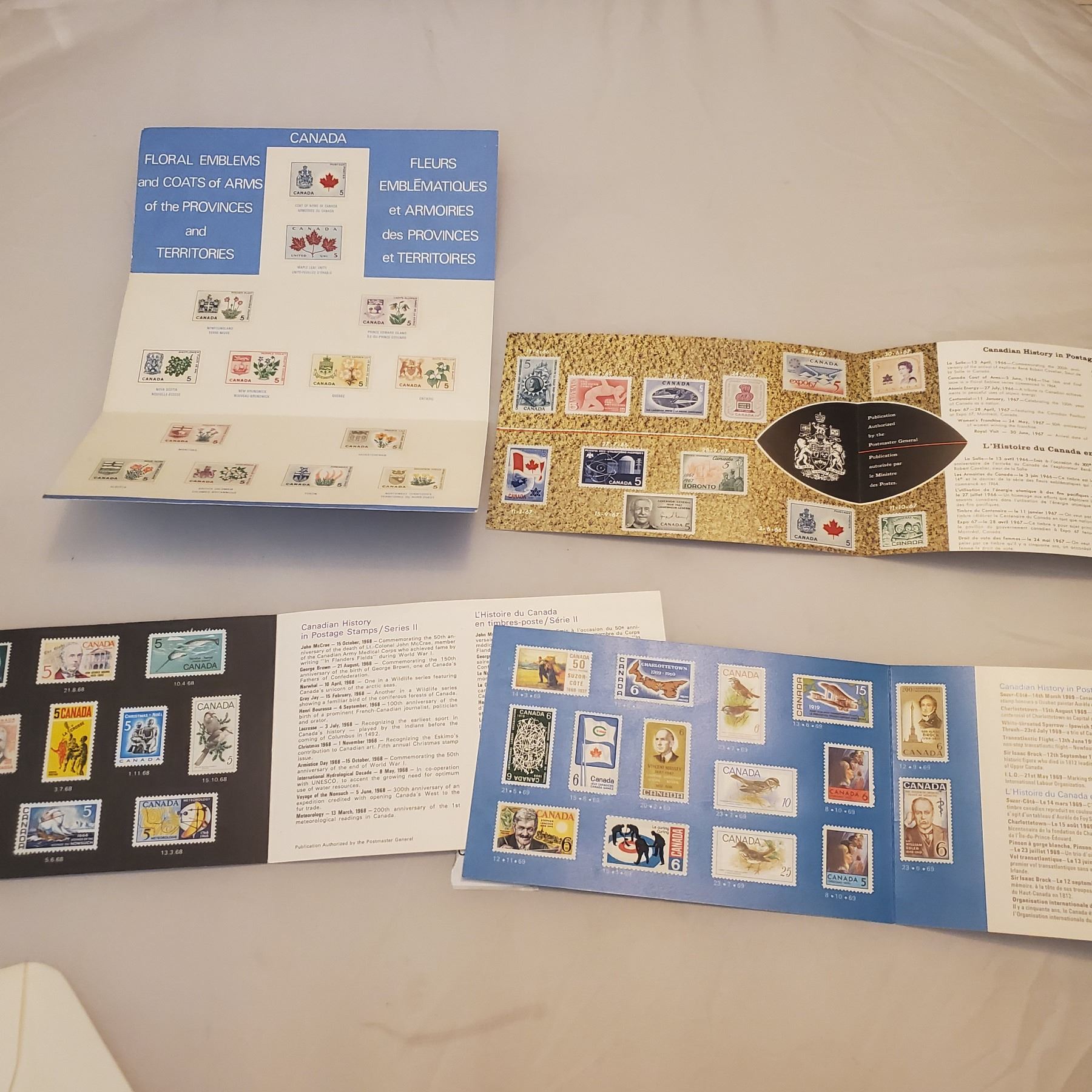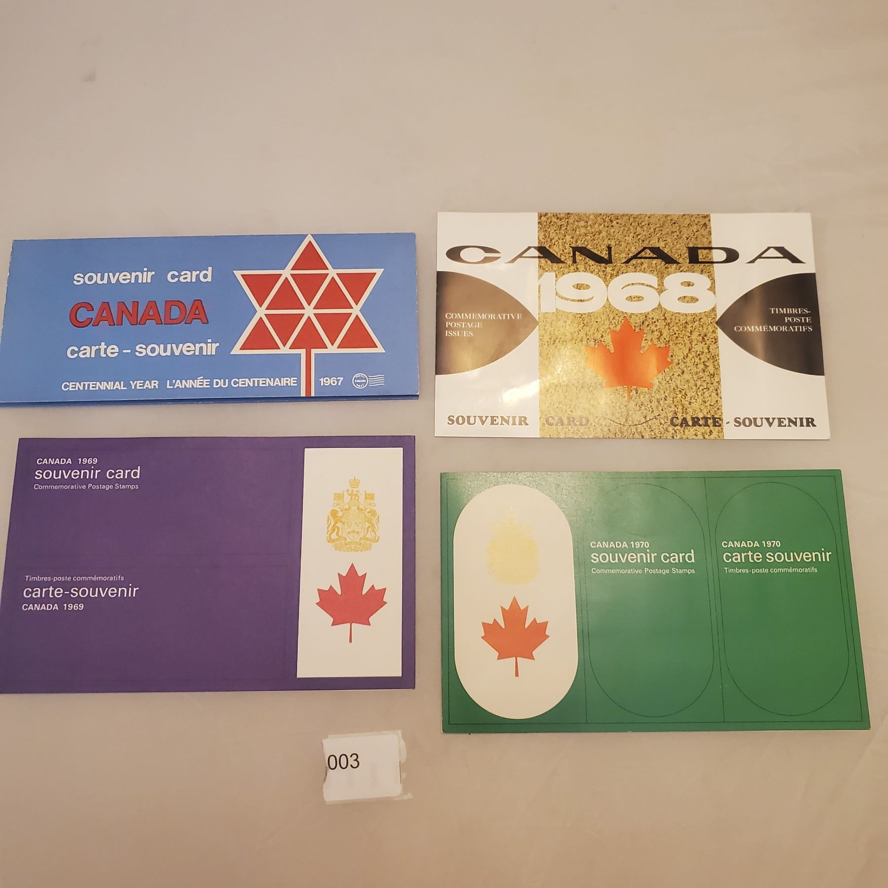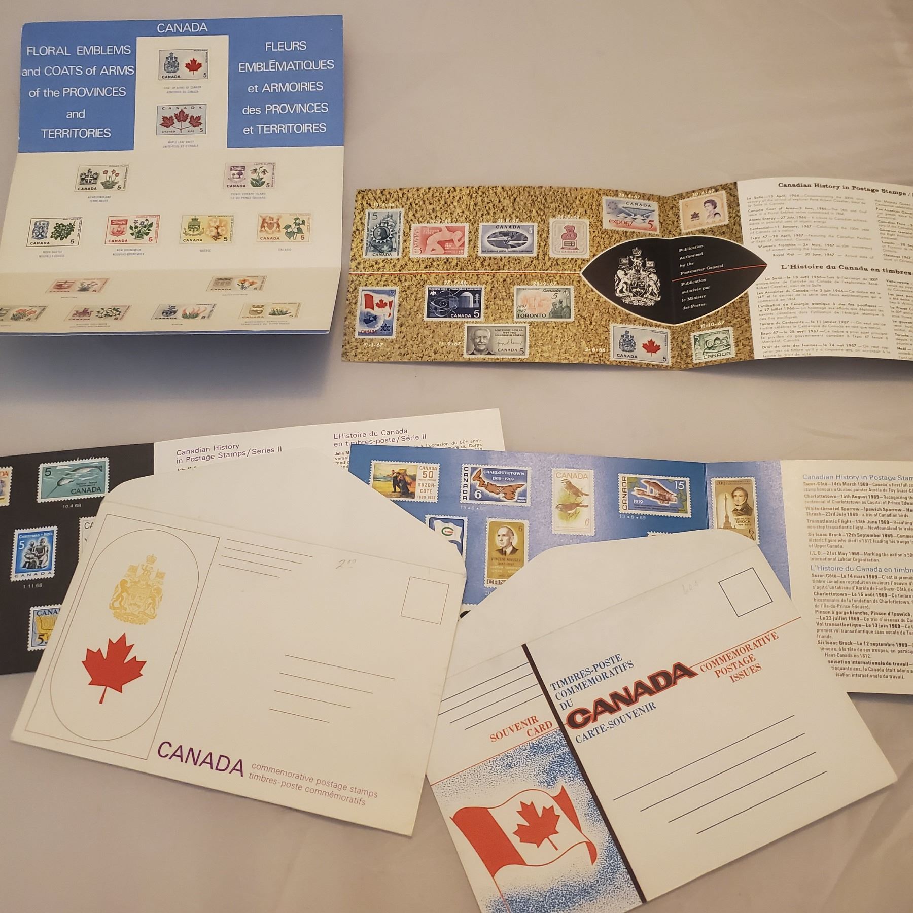 Lot of 4 New Stamps Souvenir Canada cards 1967 1968 1969 1970