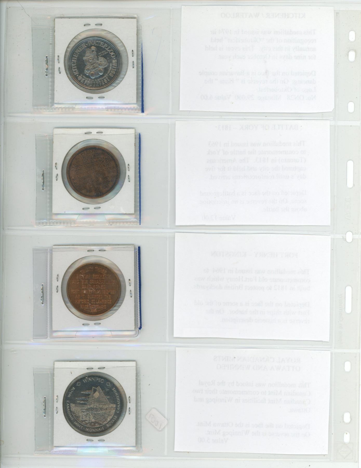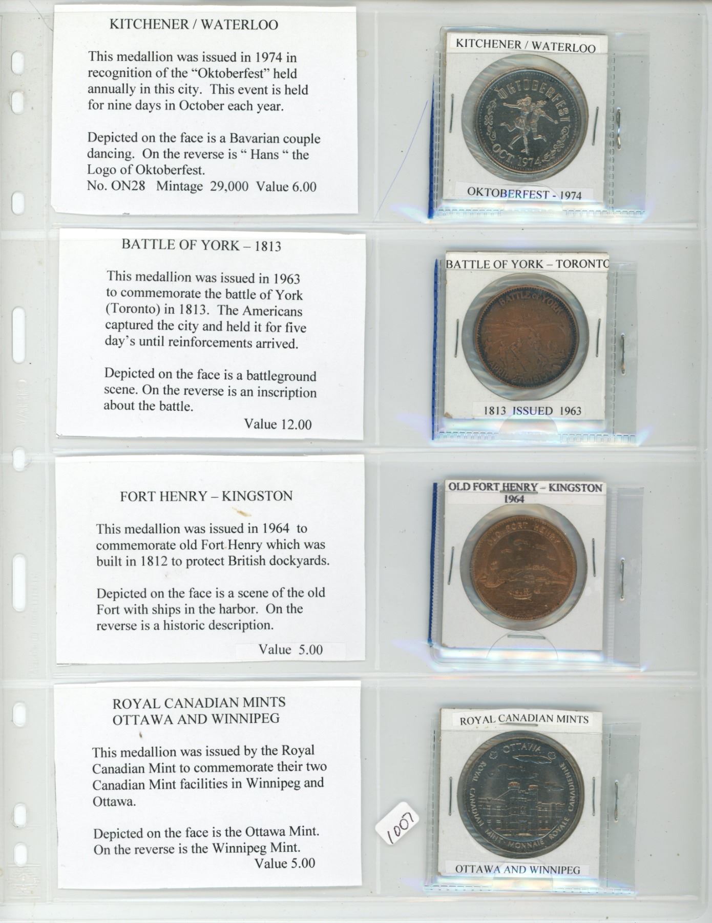 Lot of 4 Ontario Medals and Trade Dollars. 1974 Kitchener-Waterloo Oktoberfest, 1813 Battle of York (War of 1812) medal, 1812 Fort Henry-Kingston medal and Royal Canadian Mints Medal. All Unc.