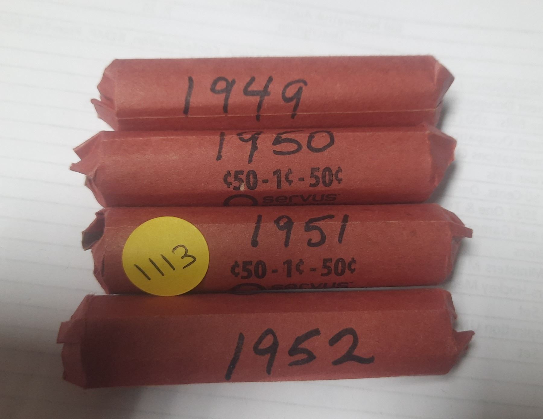 Lot of 4 Rolls Canada 1¢: 1949, 1950, 1951 & 1952