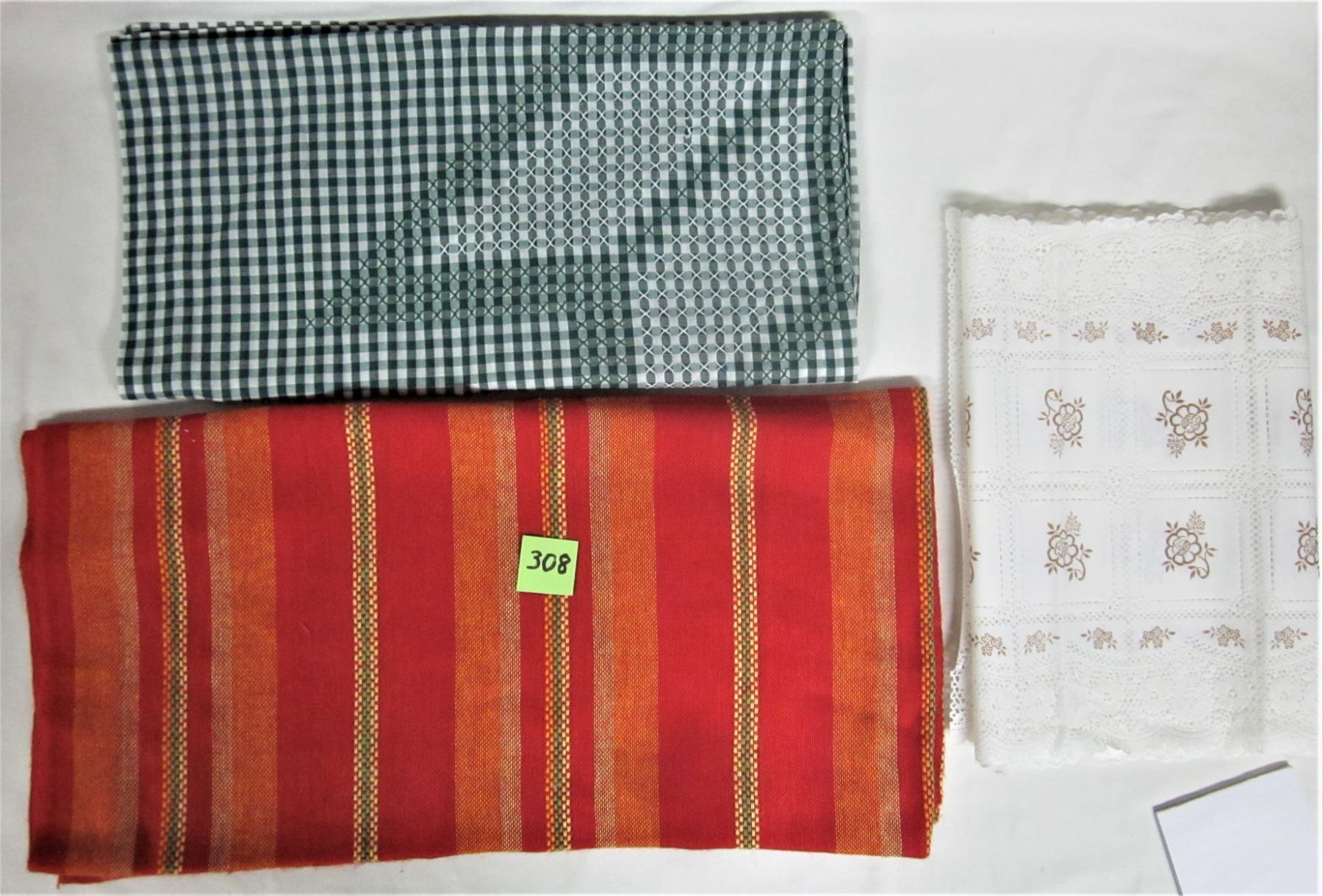 Lot of 4 Table Cloths Red Striped 48 X 48 80X15 White Vinyl 40X40 Green/White Checkerd + 68" Circular White Vinyl Pattern