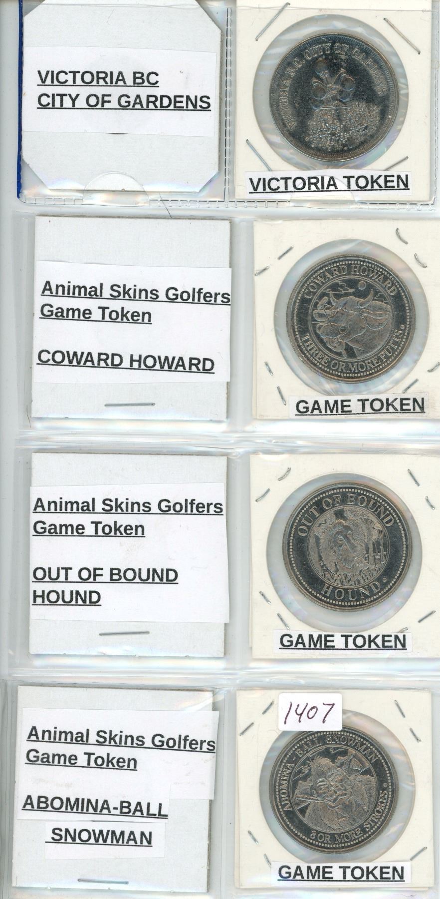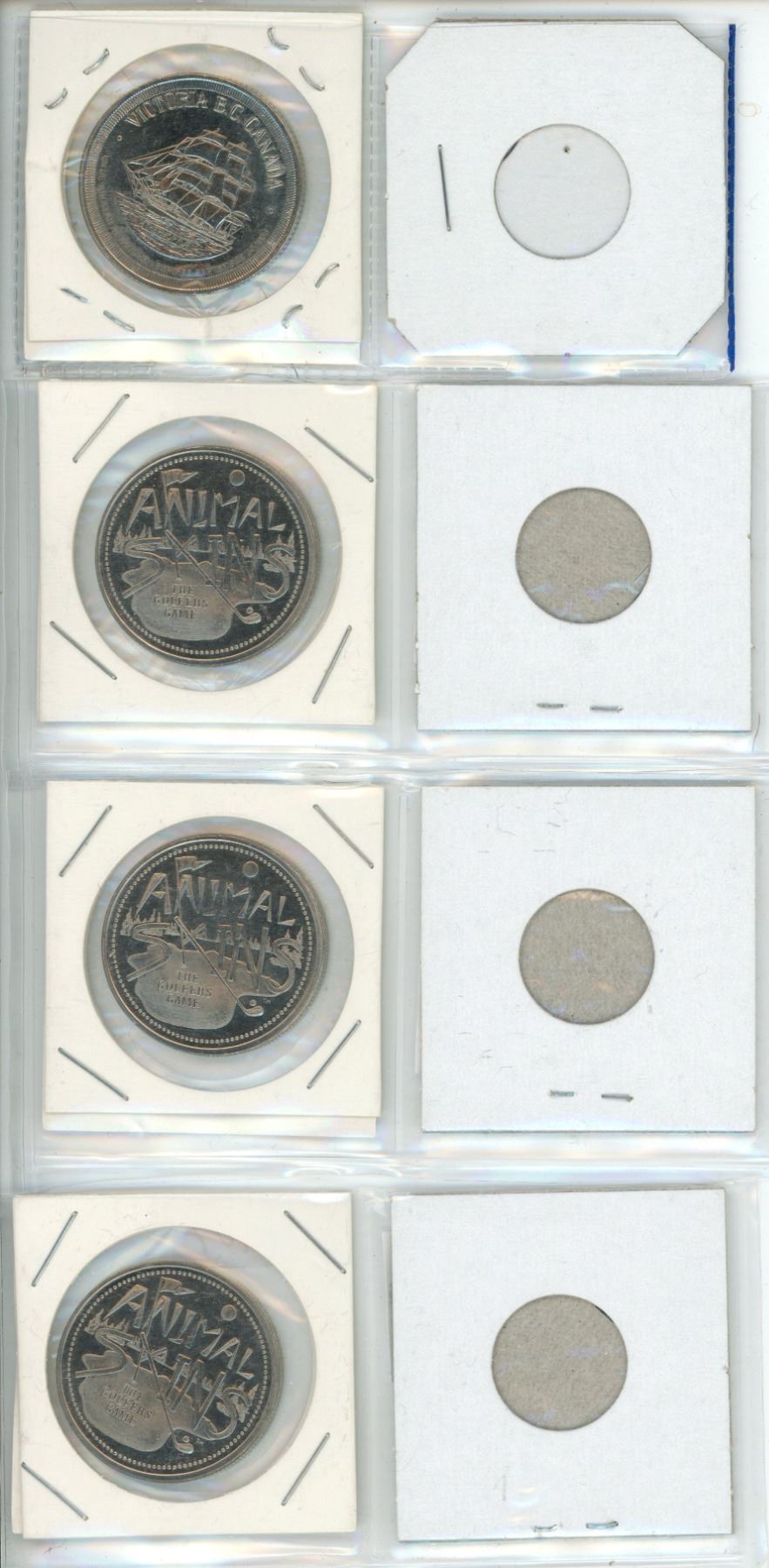Lot of 4 Tokens - Victoria BC City of Gardens, 3 Animal Skins Golfers Game