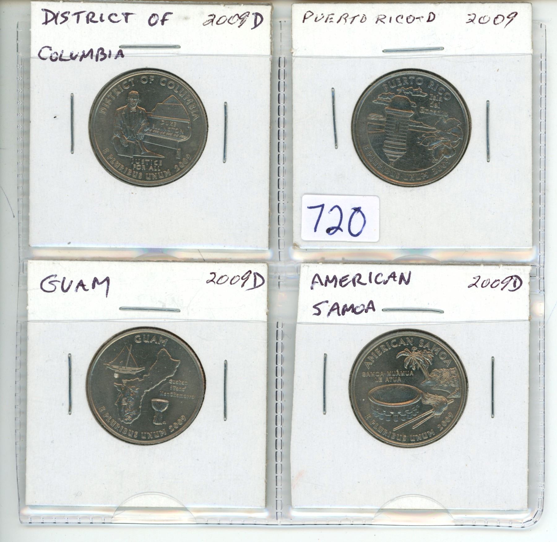 Lot of 4 U.S. States Quarters for non-States. Includes District of Columbia, Puerto Rico, Guam & American Samoa. Denver Mint. Uncirculated.