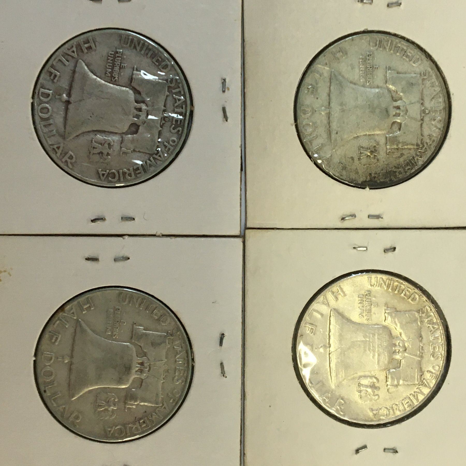 Lot of 4 USA SILVER 50 CENT PIECES 1953 1954 1956 1957