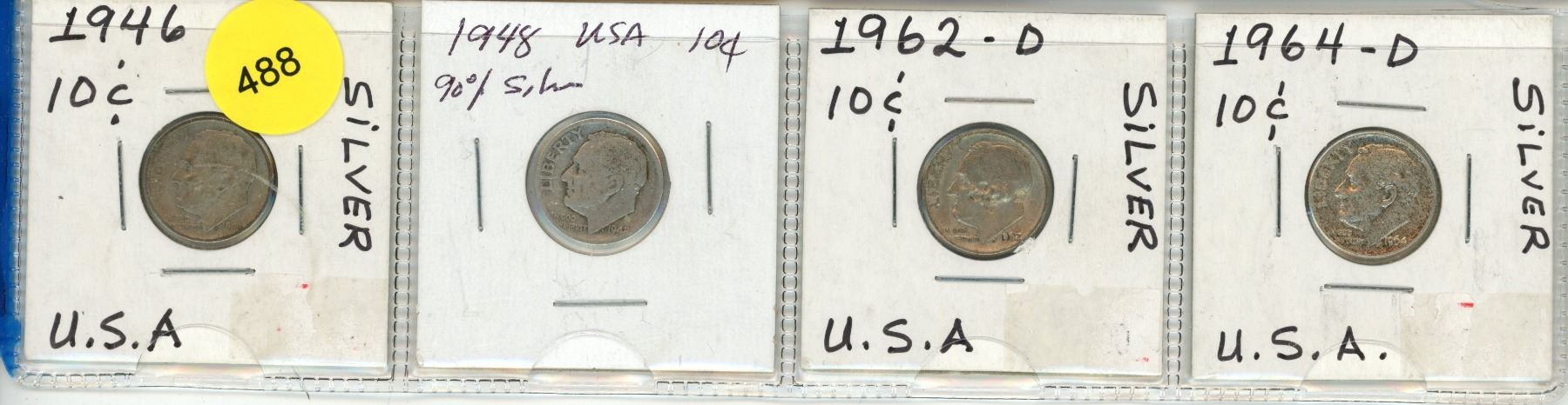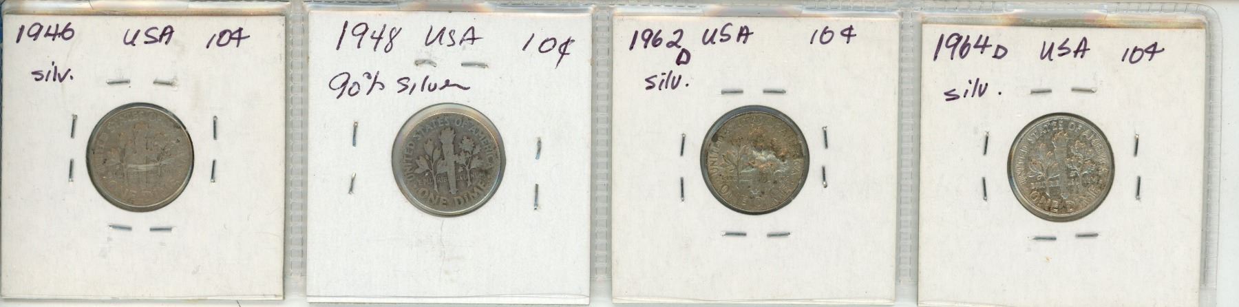 Lot of 4 USA Silver 10¢: 1946, 1948, 1962D, 1964D