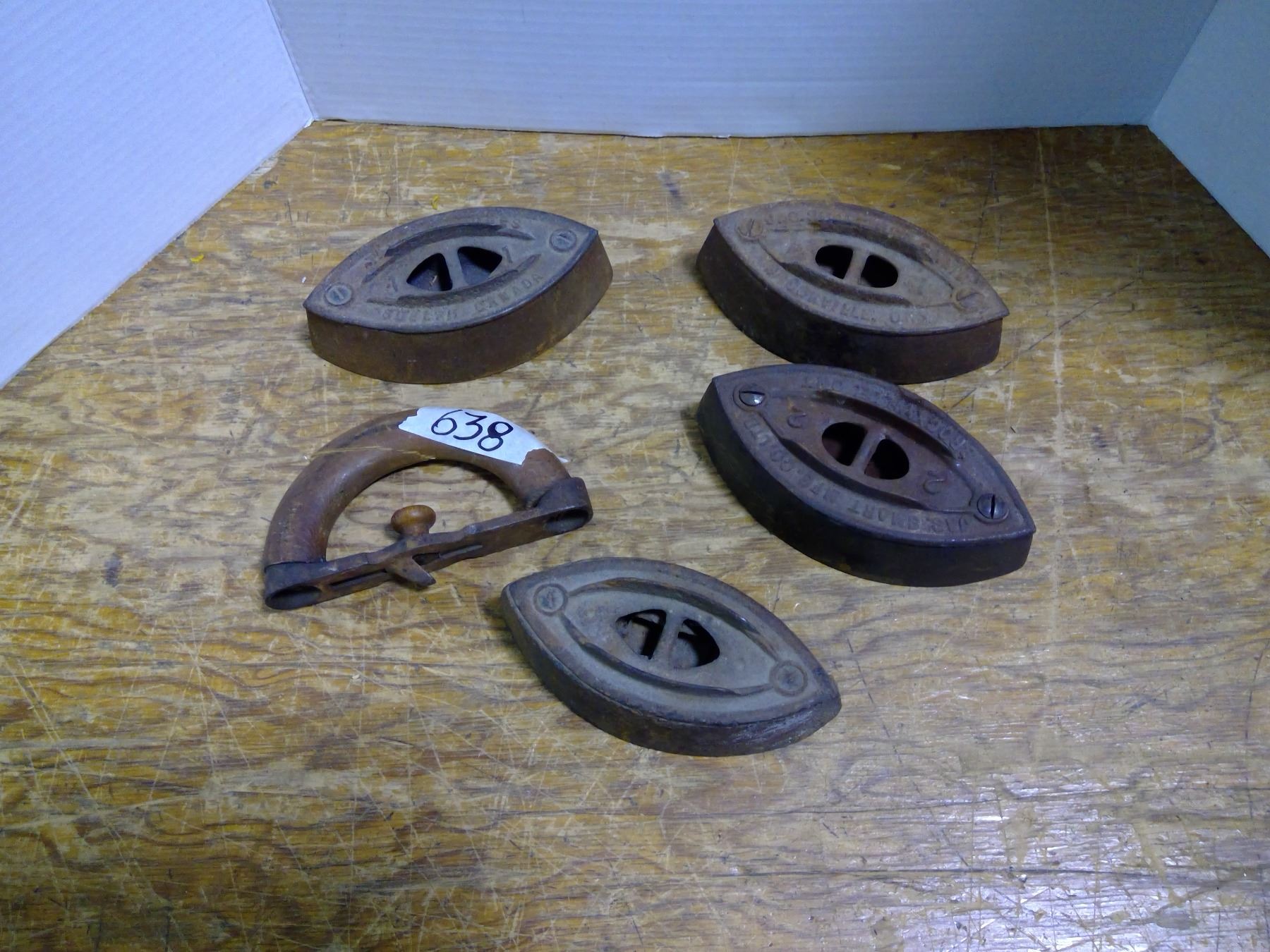 Lot of 4 Vintage Irons, 1 Broken Handle