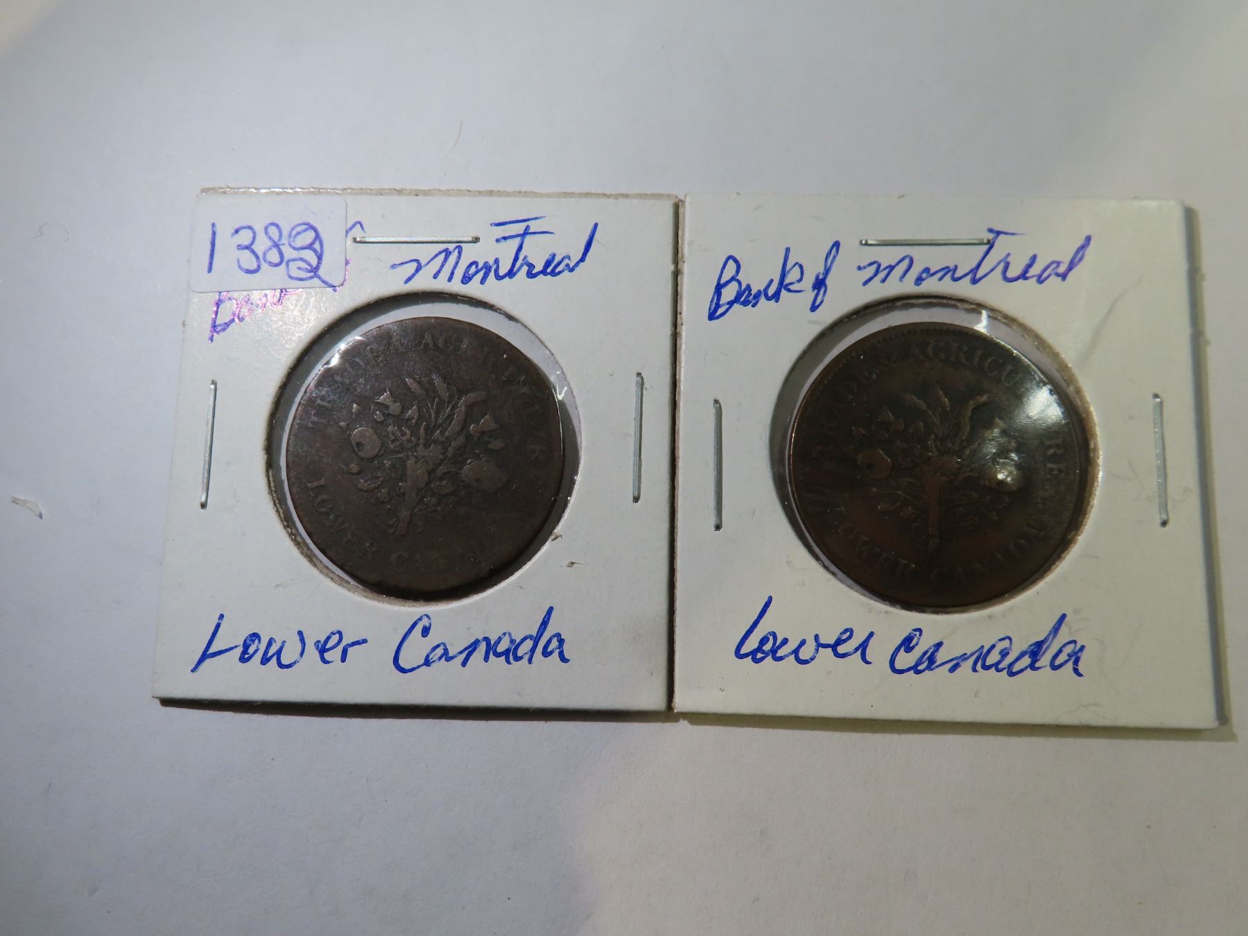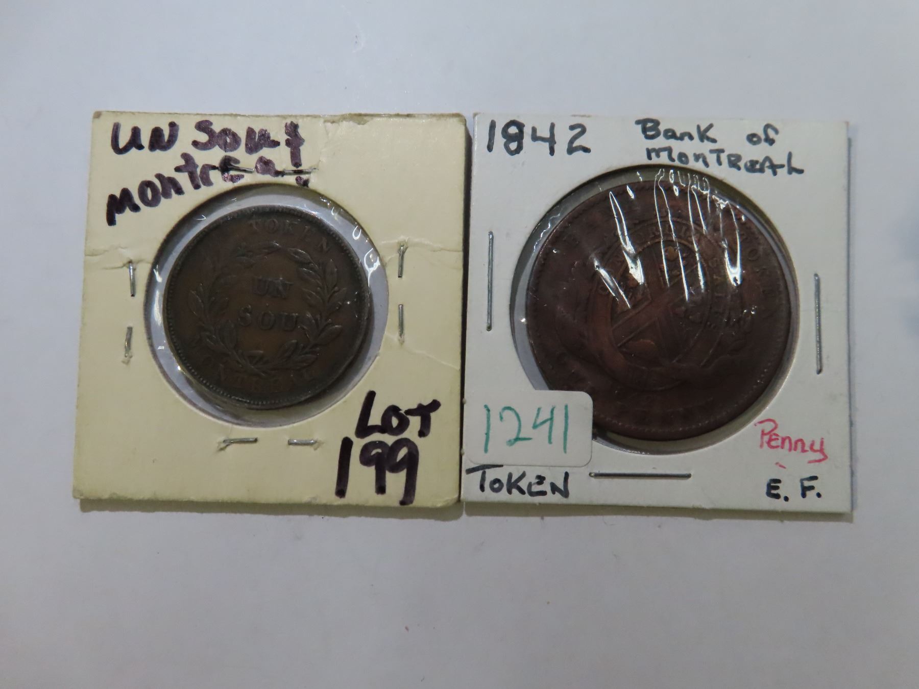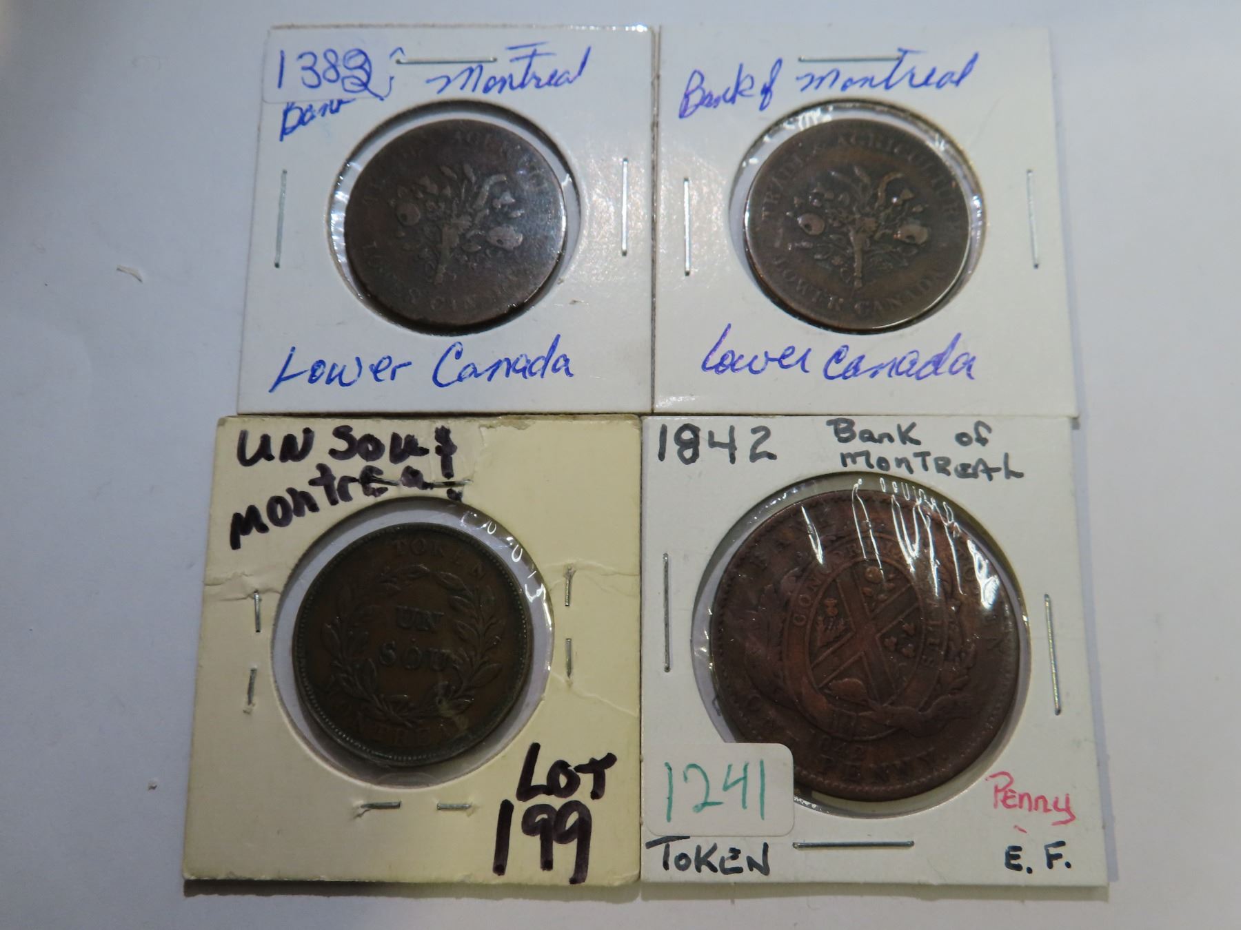 Lot of 4 bank of Montreal coins 3xUN sou and 1 penny