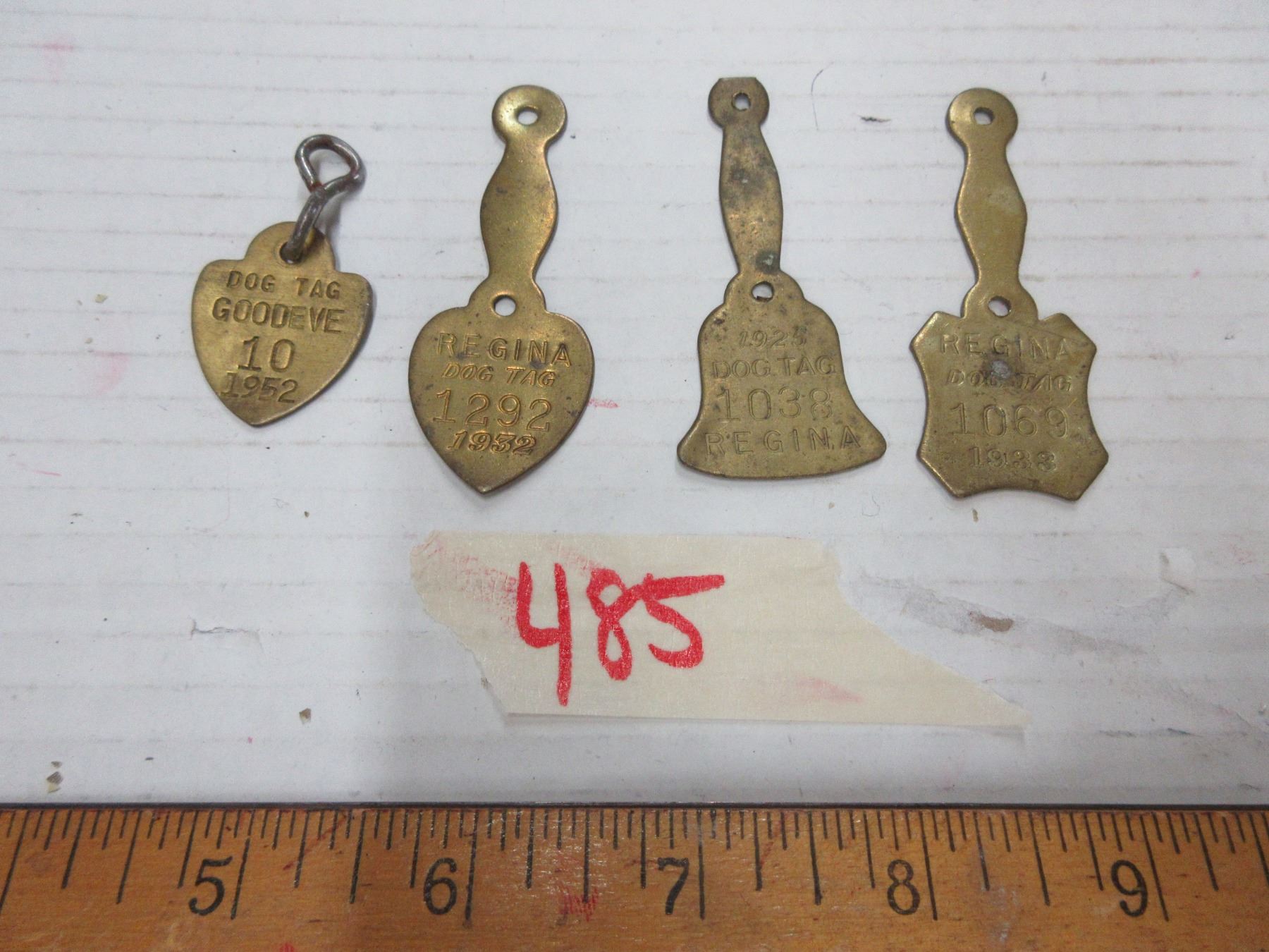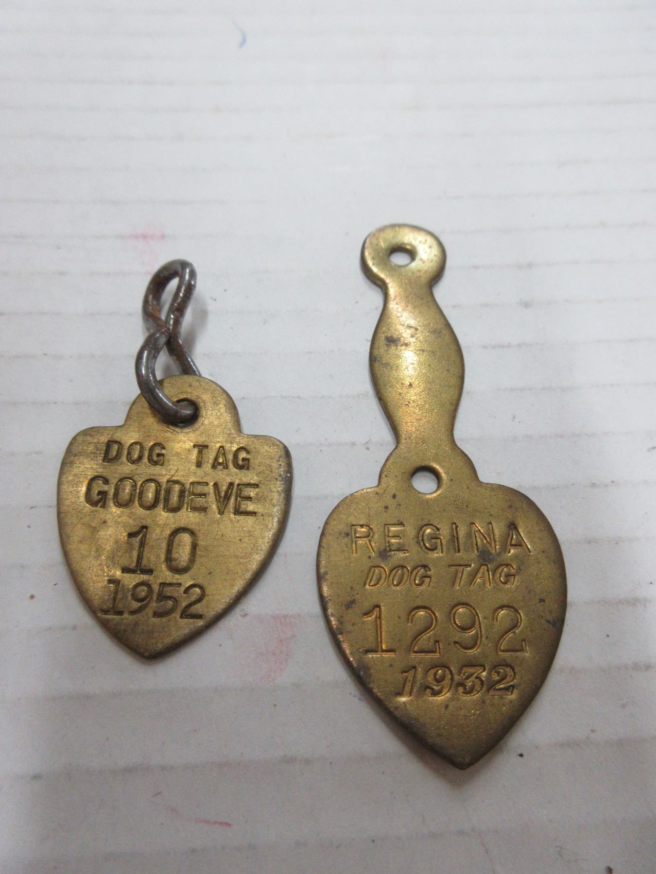 Lot of 4 dog tags (1- good eve, 3x regina)