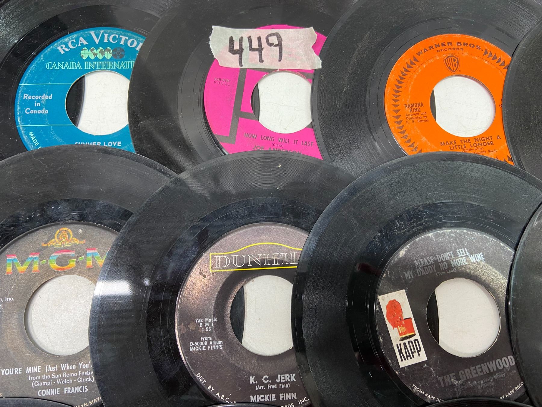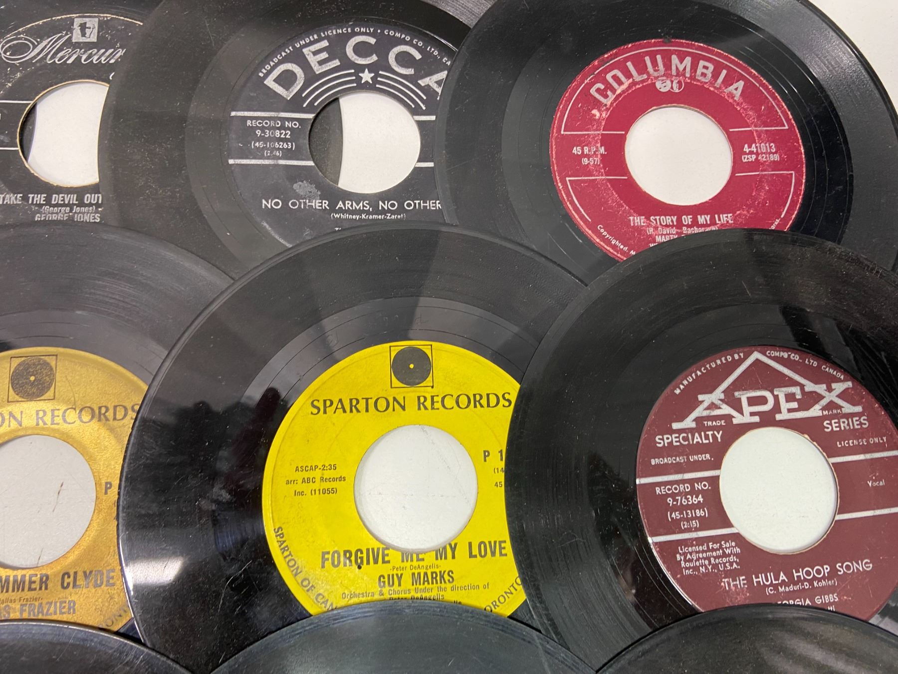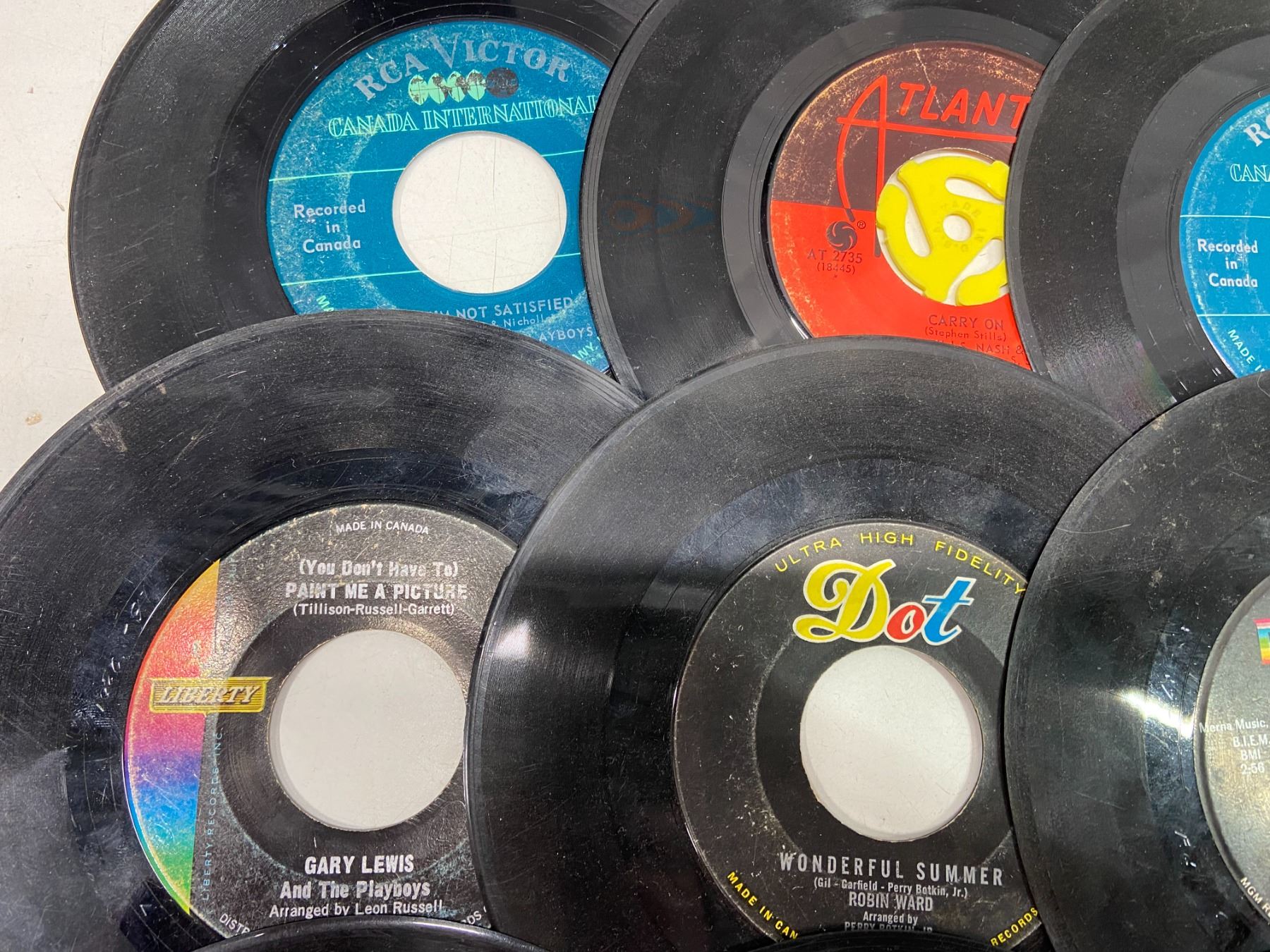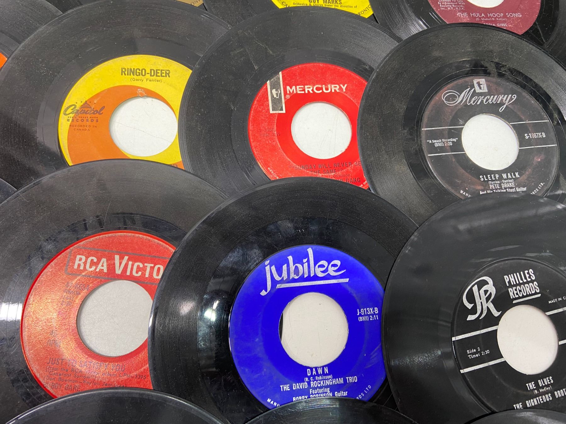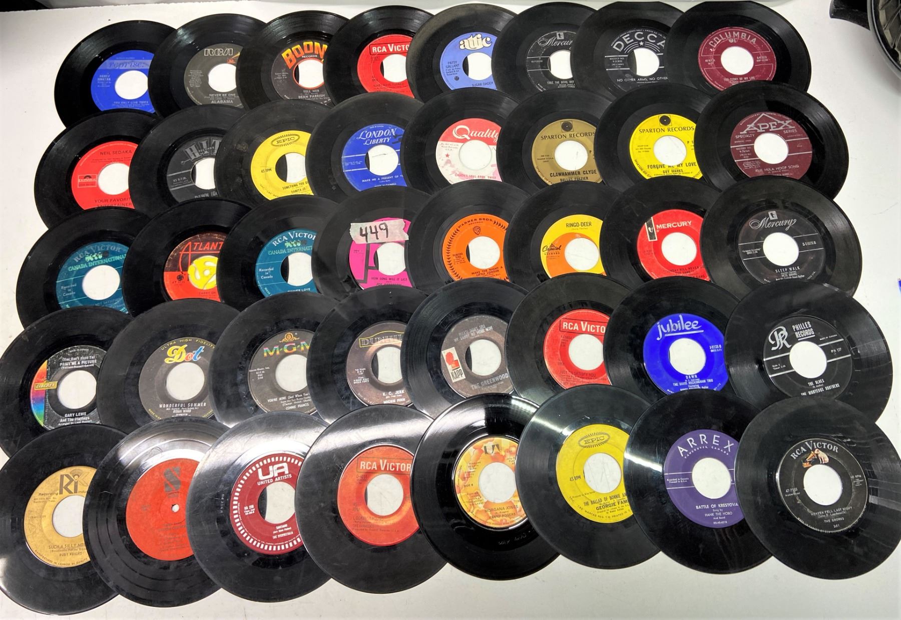 Lot of 49 45's Records Various Artists/Decades w/o sleeves