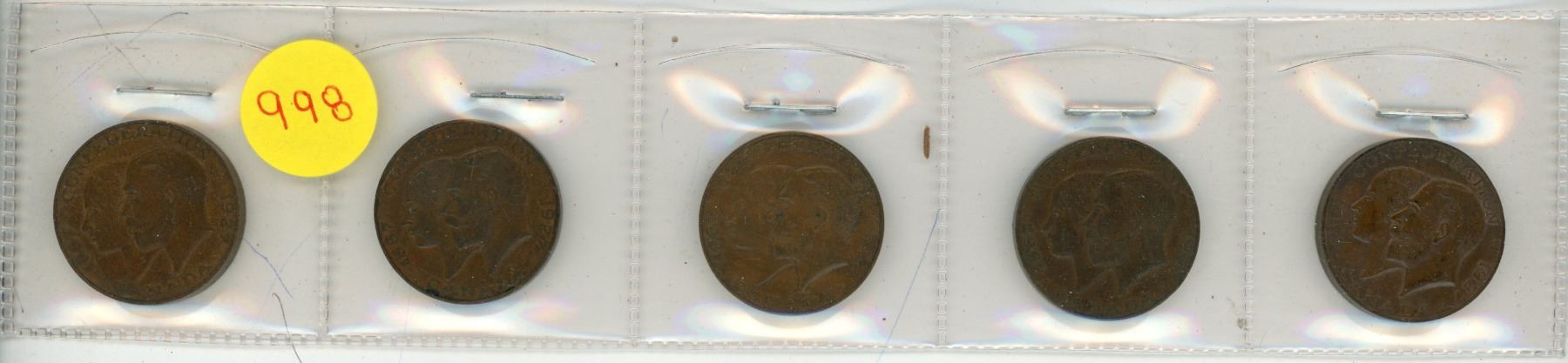 Lot of 5 1927 60th Anniversary of Canada medals. EF or higher.