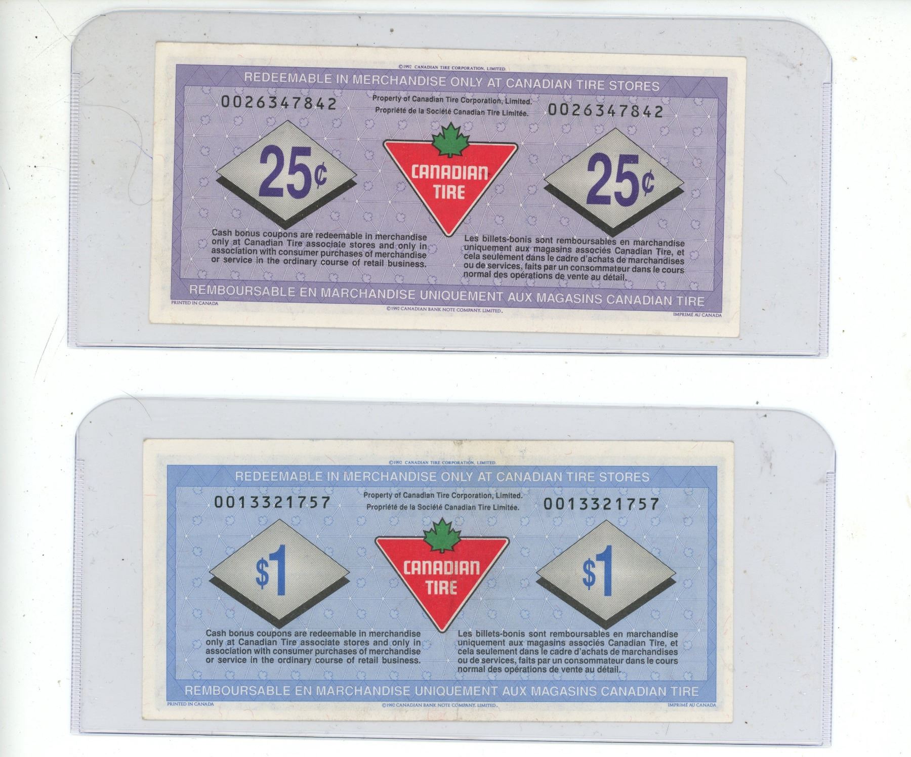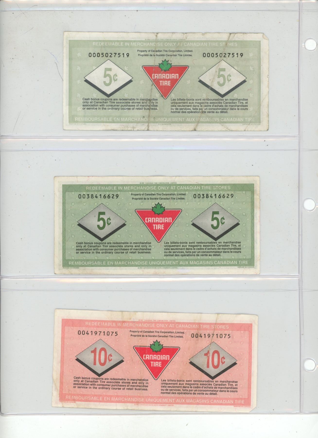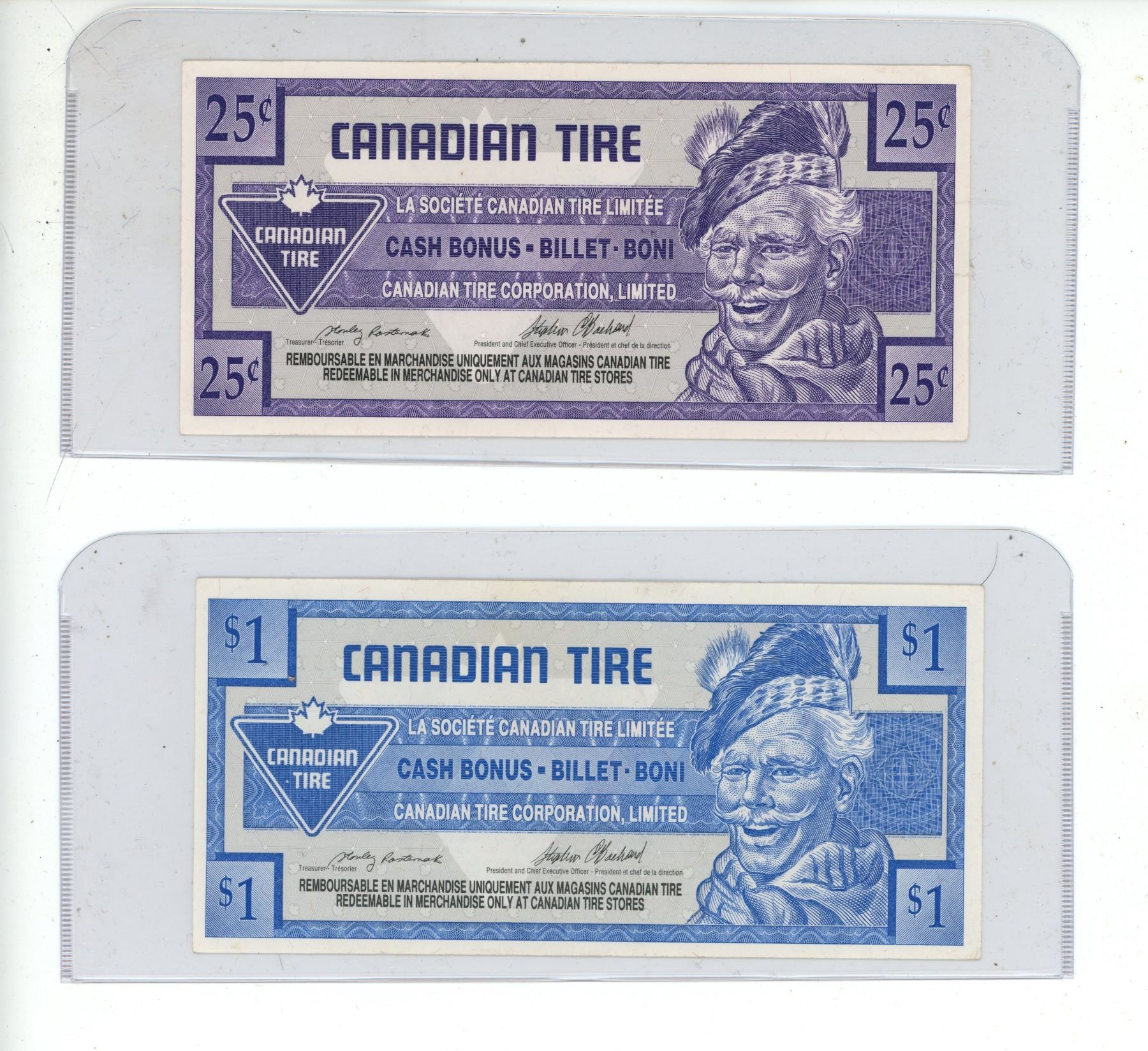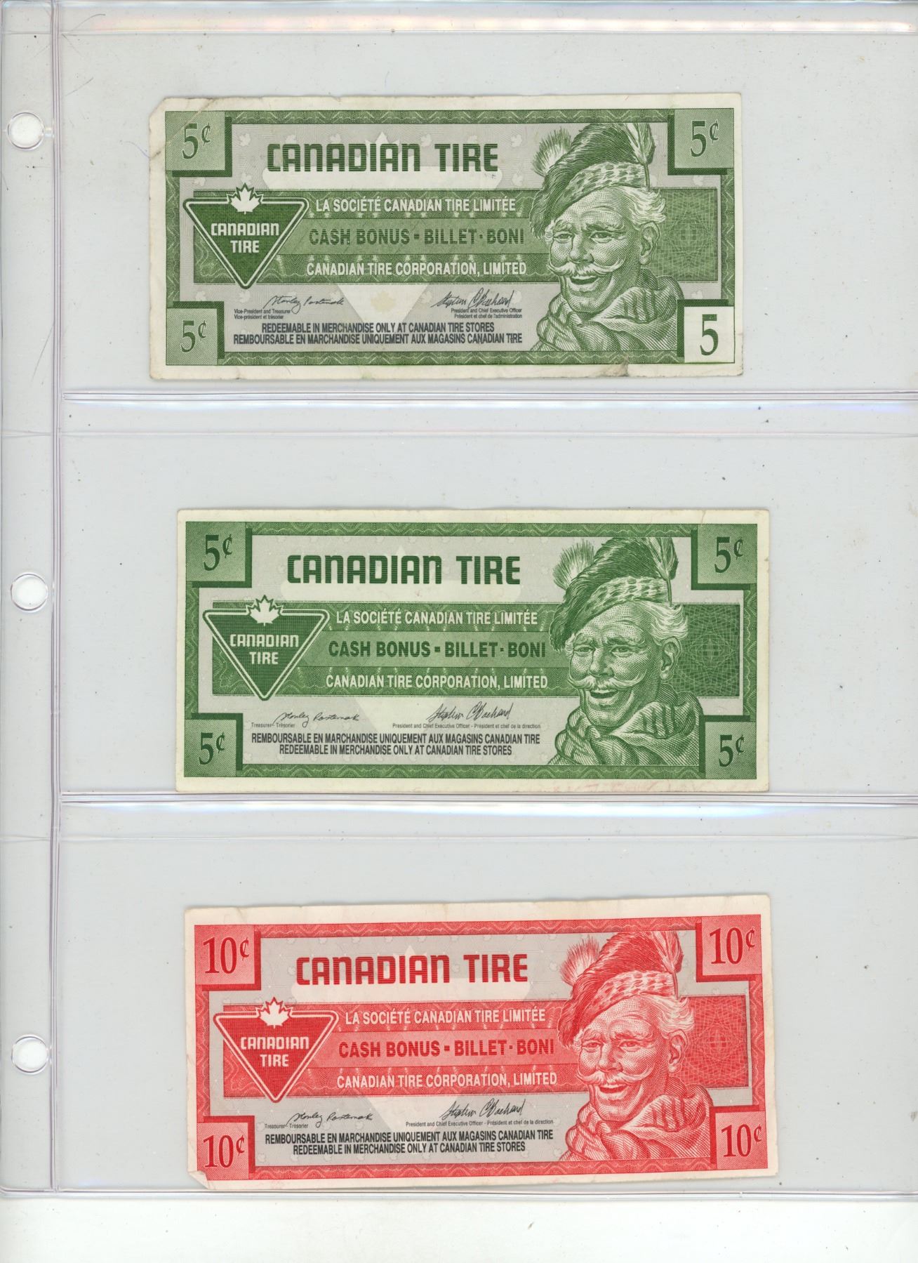 Lot of 5 Canadian Tire Currency. (It includes (2) 5 Cents, 10 Cents, 25 Cents and 1 Dollar)