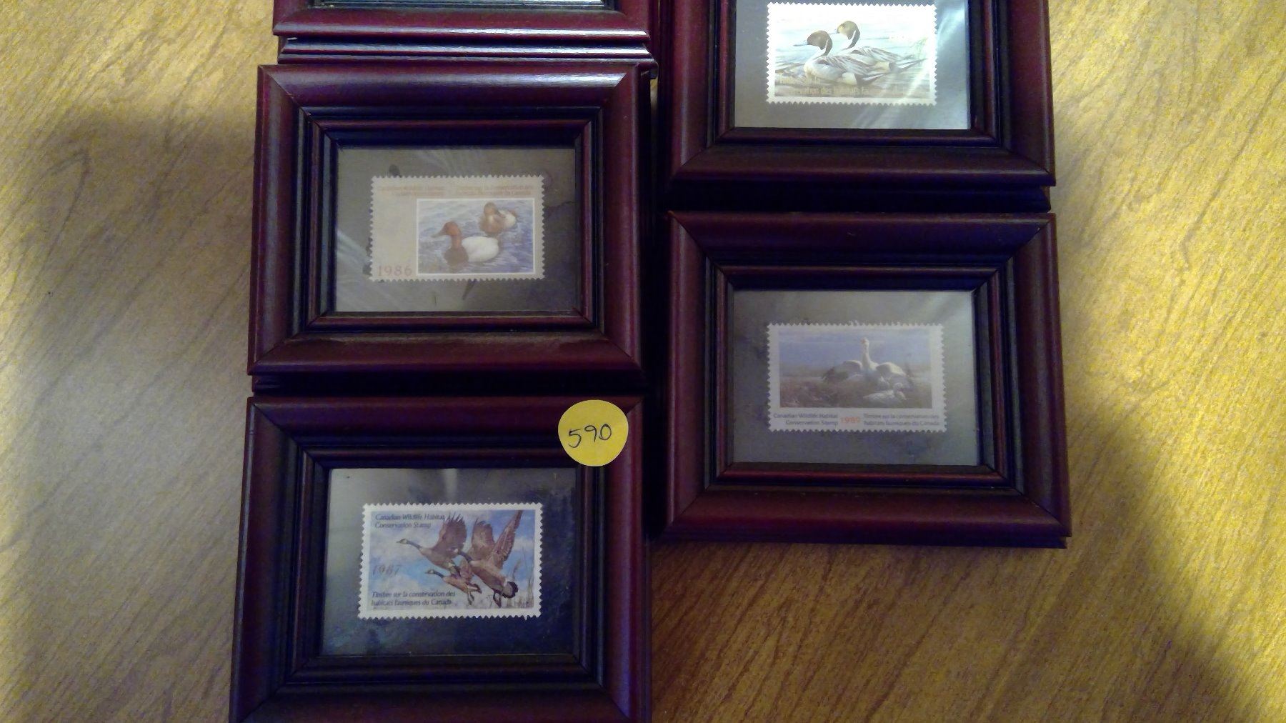 Lot of 5 Canadian Wildlife Conservation stamps in frames 1985-1989