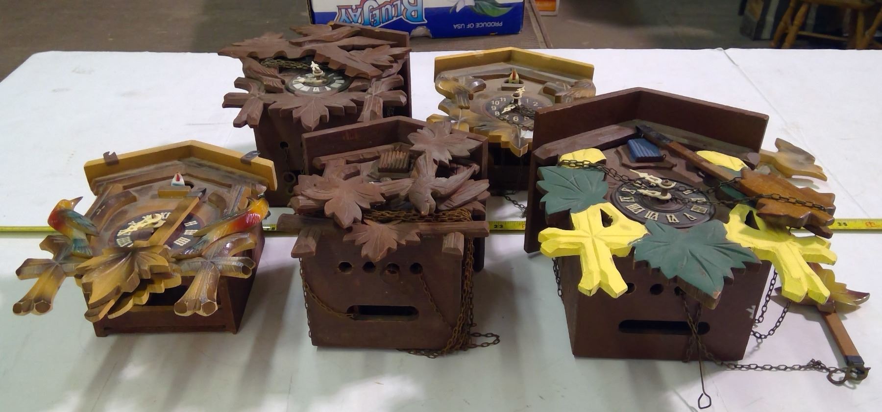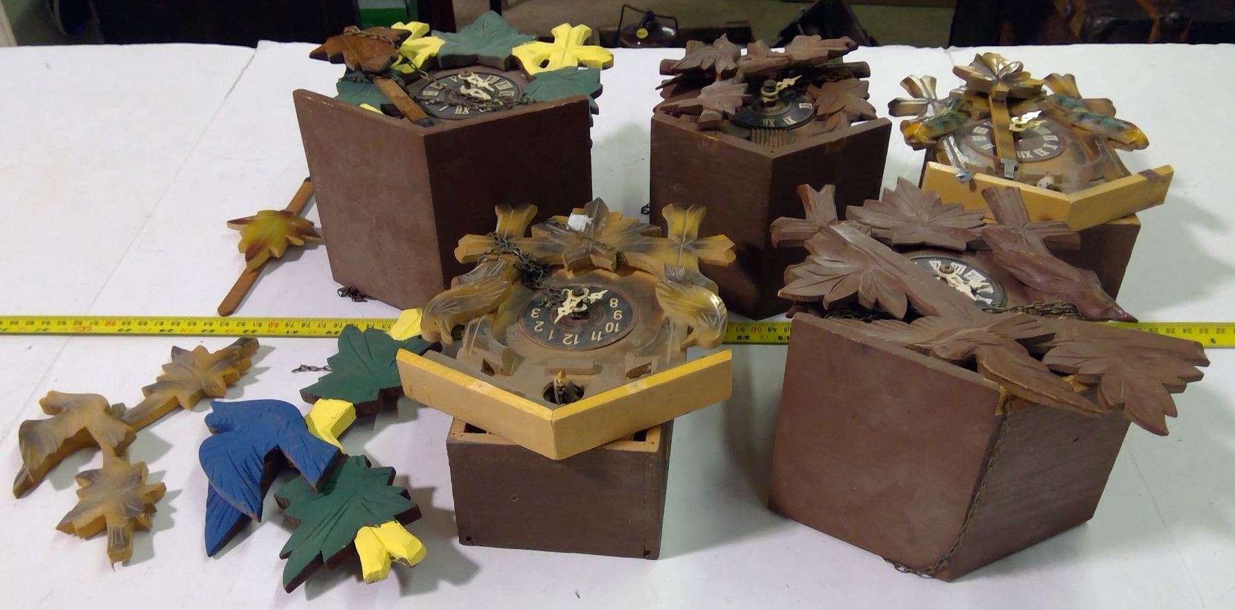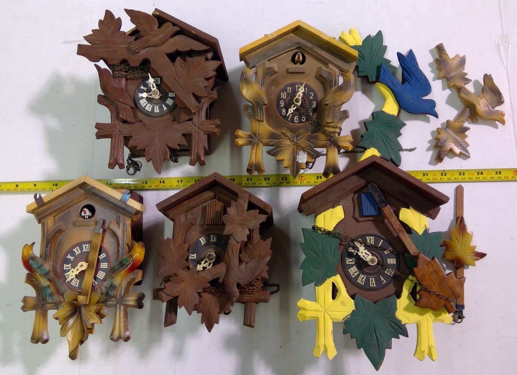 Lot of 5 Cuckoo Clocks - fix-up or parts