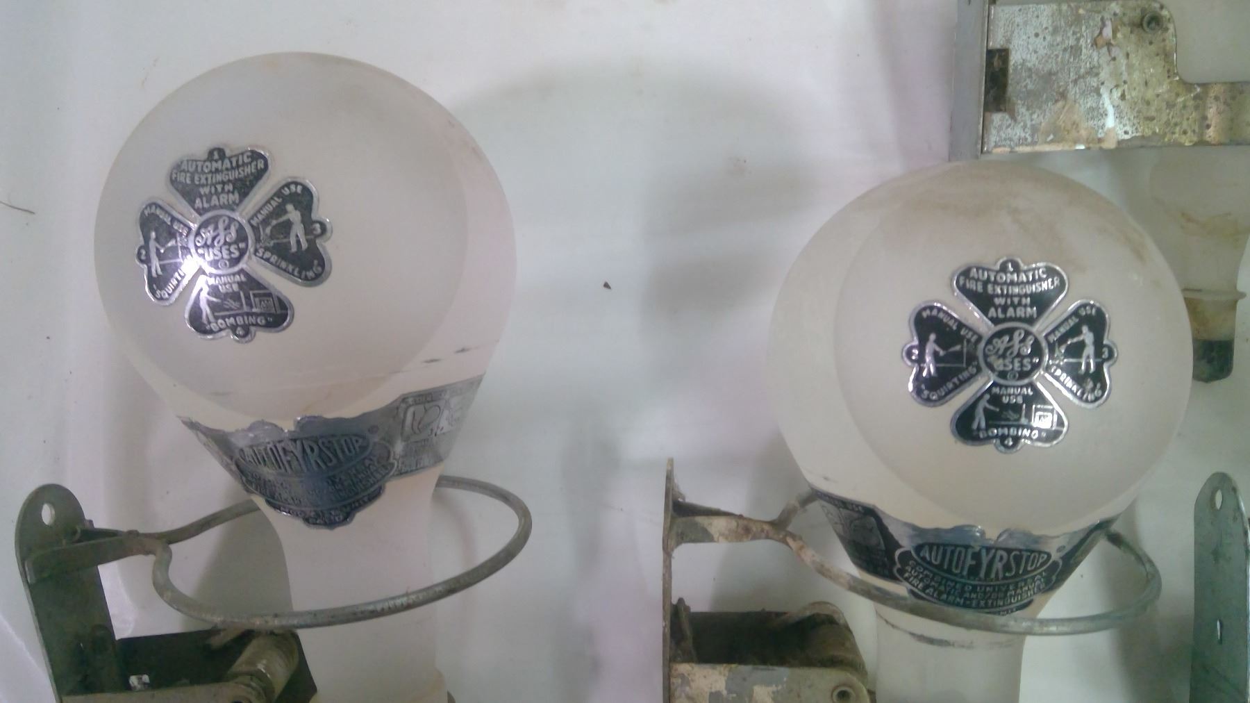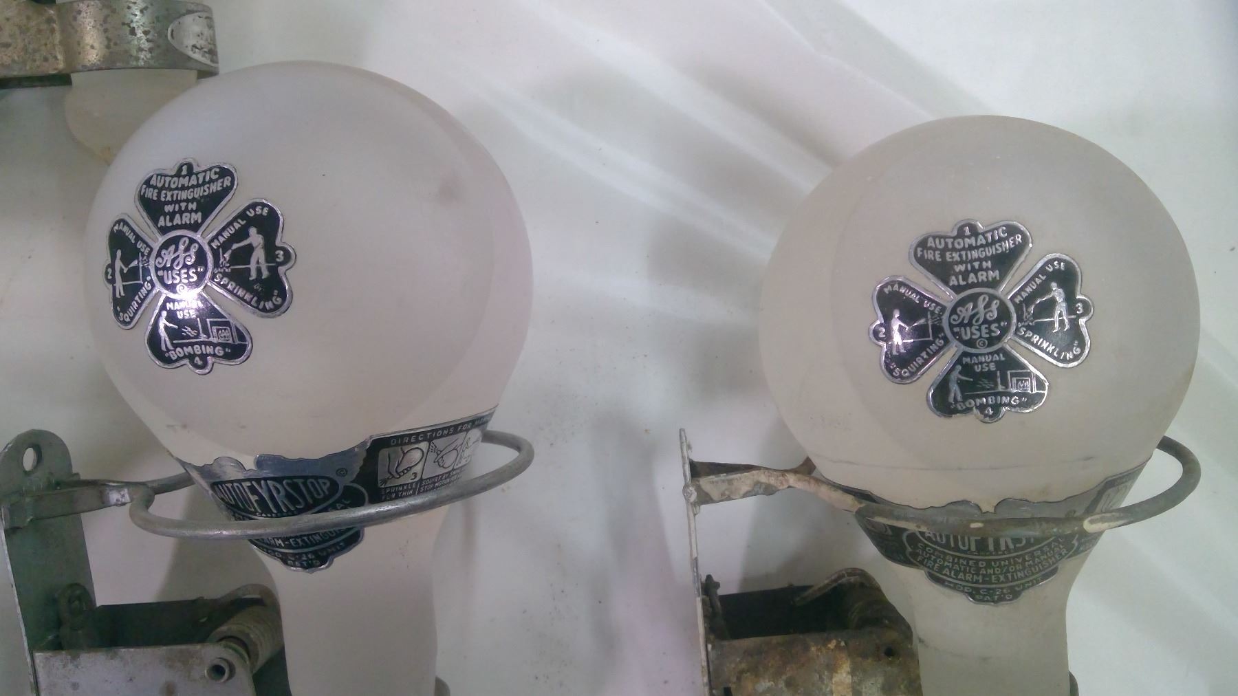 Lot of 5 Glass Fire Extinguisher Bombs w/ Wall Holders