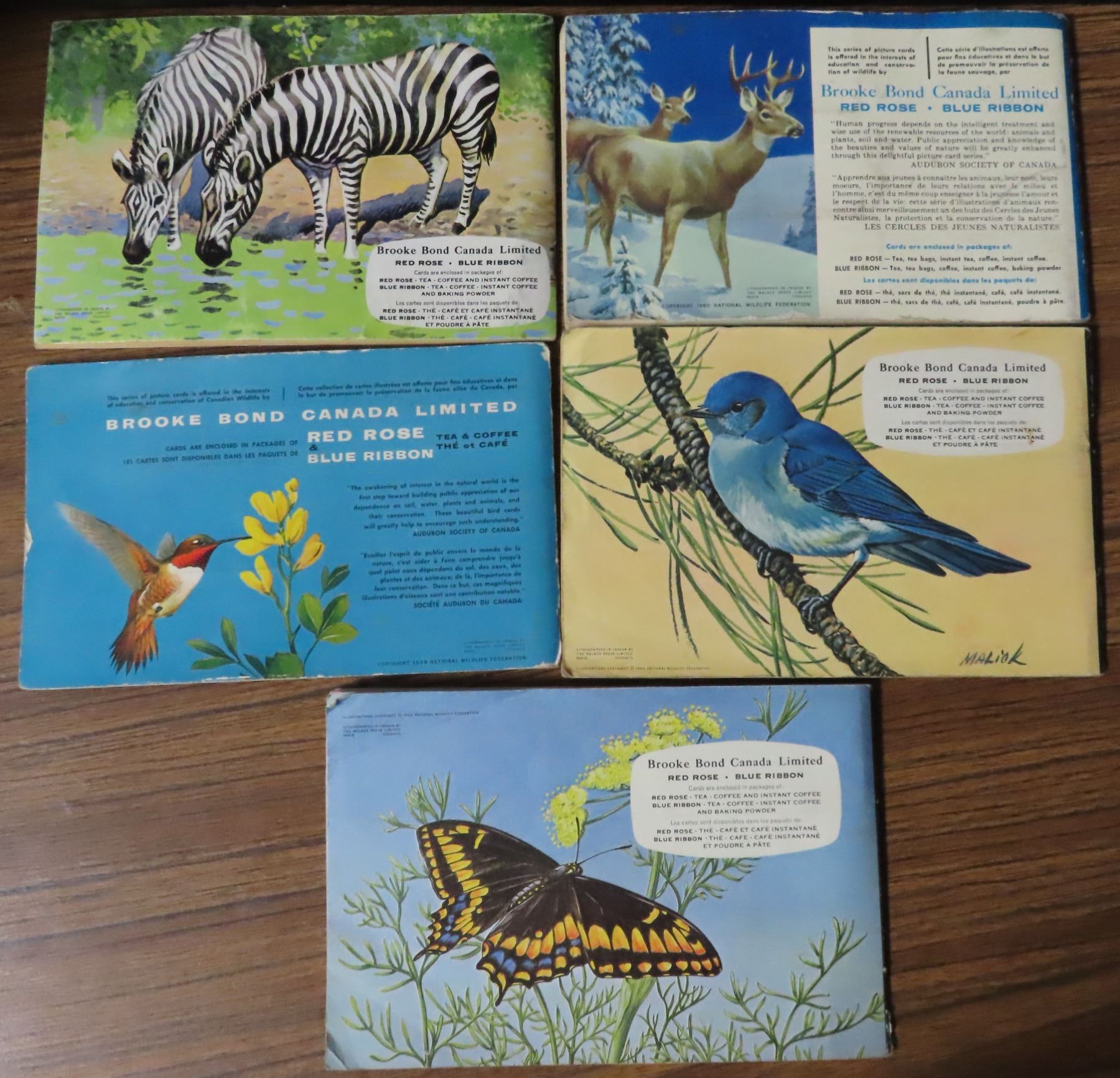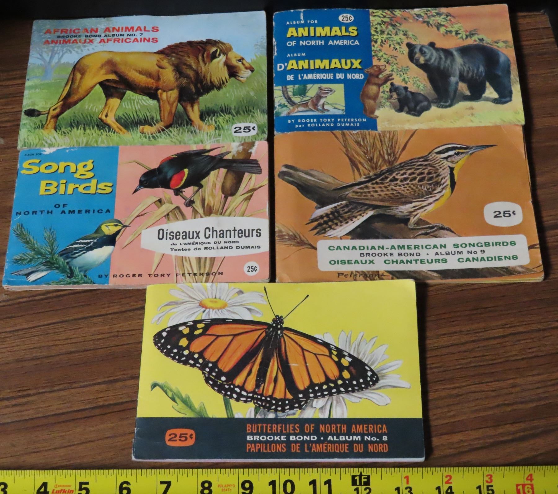 Lot of 5 Red Rose Tea Albums with Cards (4 North American Animals/birds books have 48 cards, 1 African Animals book has 41)