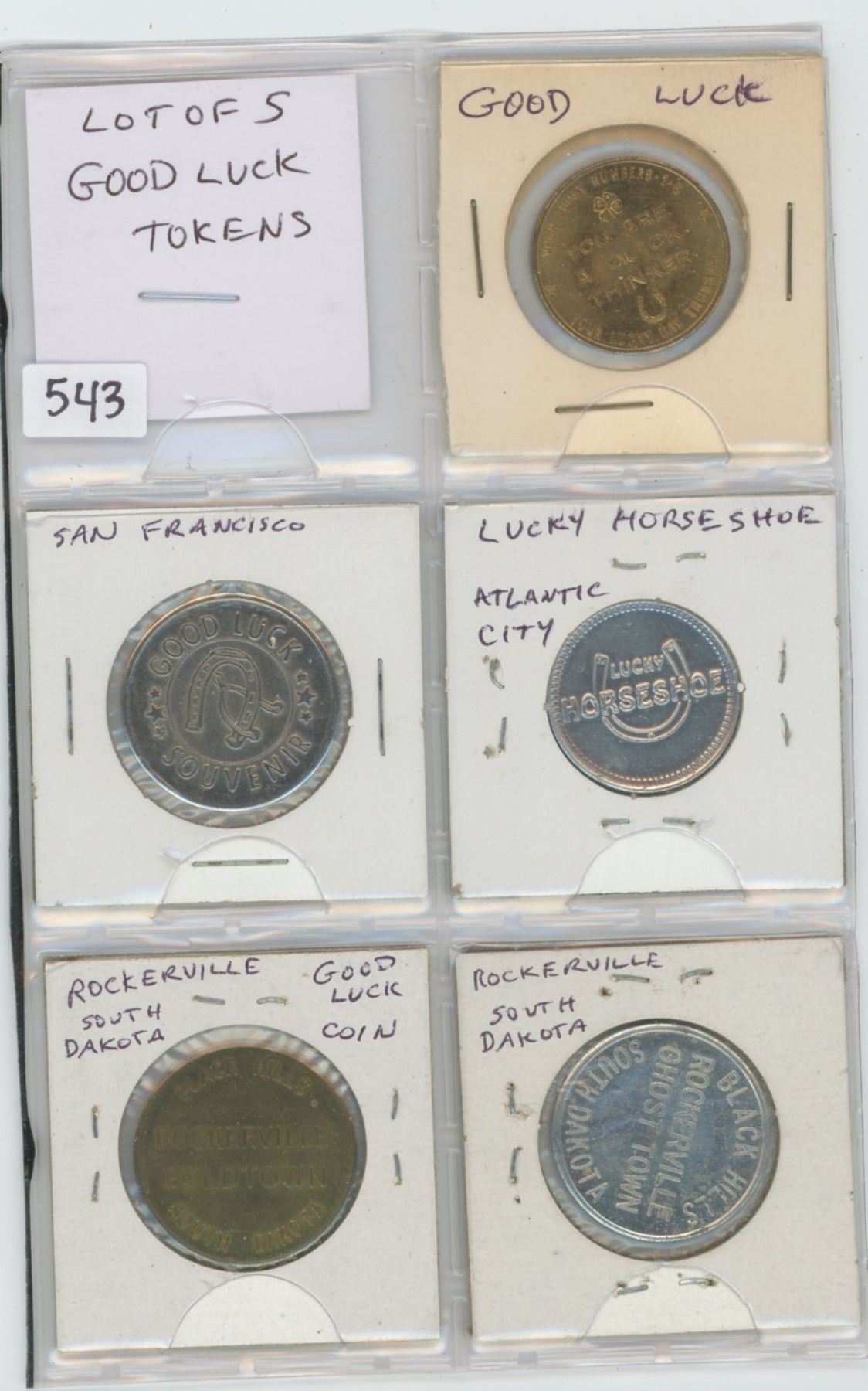 Lot of 5 U.S. Good Luck Tokens.