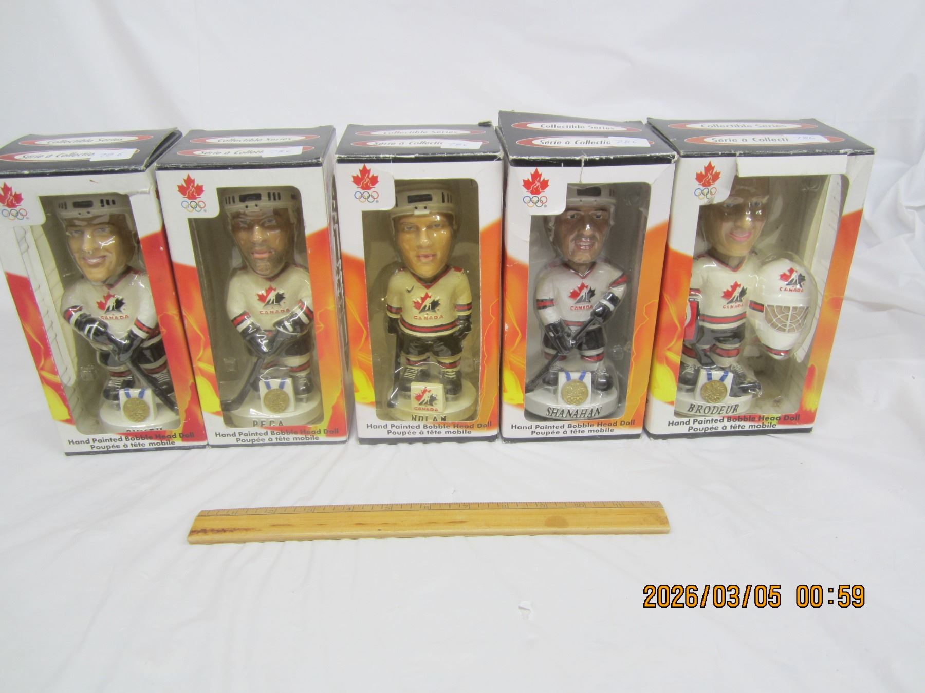 Lot of 5 Vintage Team Canada Bobble Heads in Box Smyth, Peca, Nolan , Shanahan , Brodeur