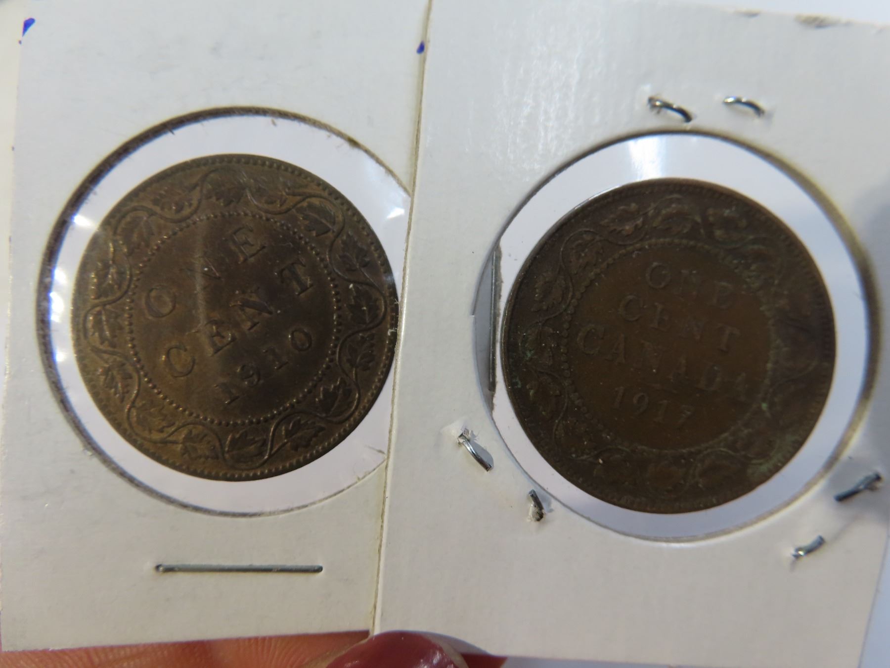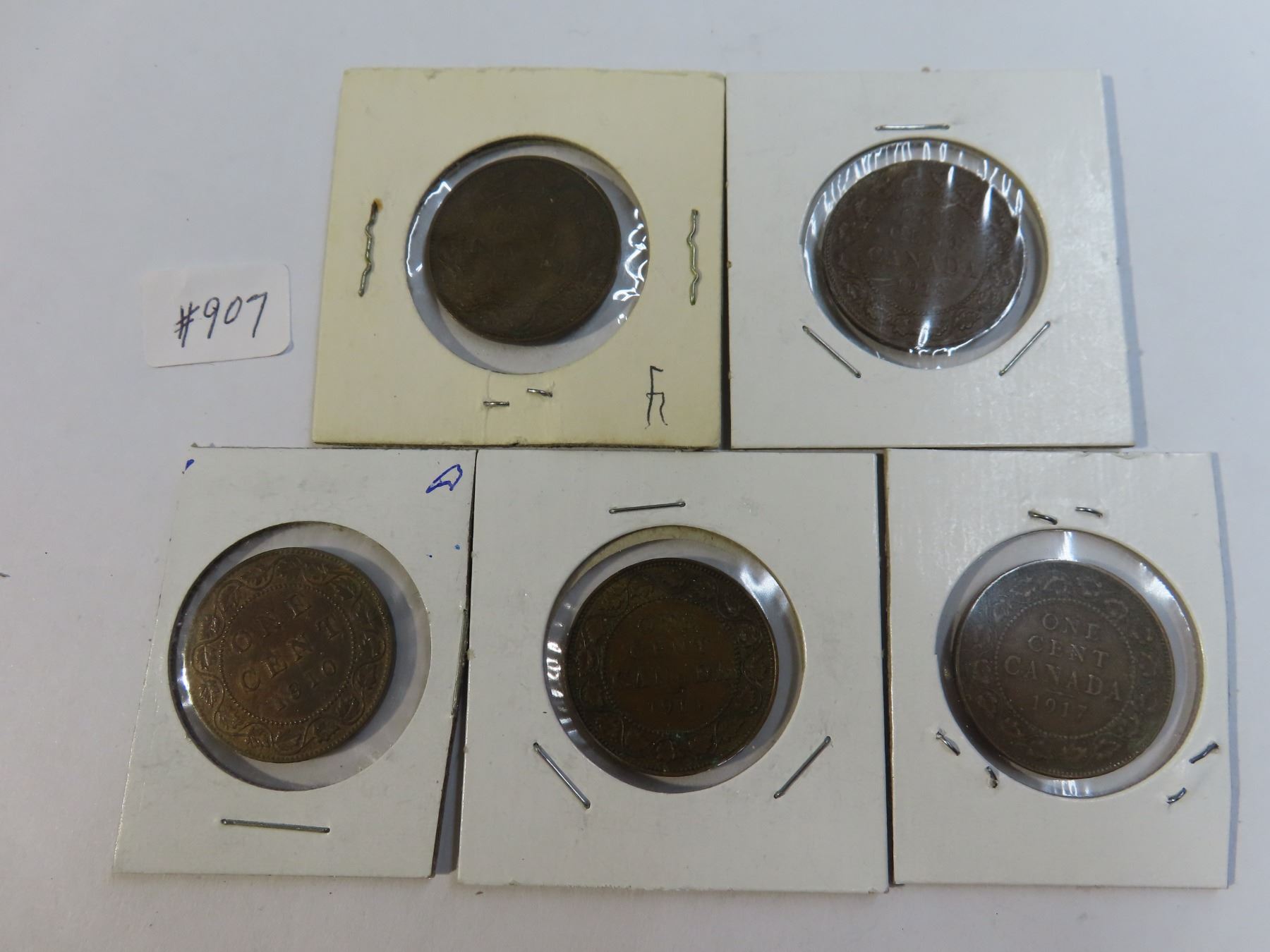 Lot of 5 large canadian pennies (1910, 1912, 1913, 1916 and 1917